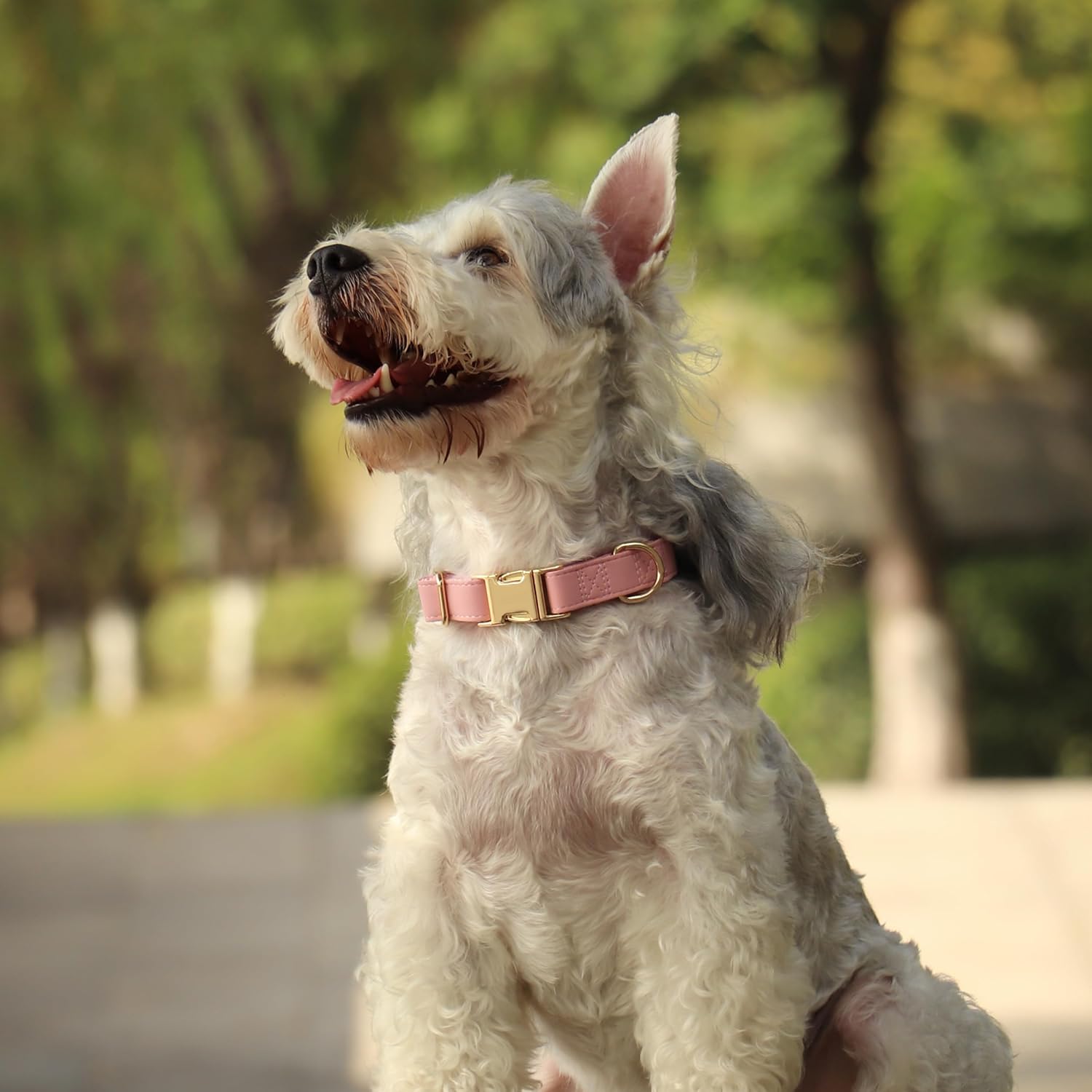 PET ARTIST Soft PU Leather Dog Collar, Bright & Classic Pink Dog Collar with Quick Release Rose Metal Buckle, Adjustable Nylon Padded Durable Pet Collars for Large Dogs Girl, Neck Fit 16-27"