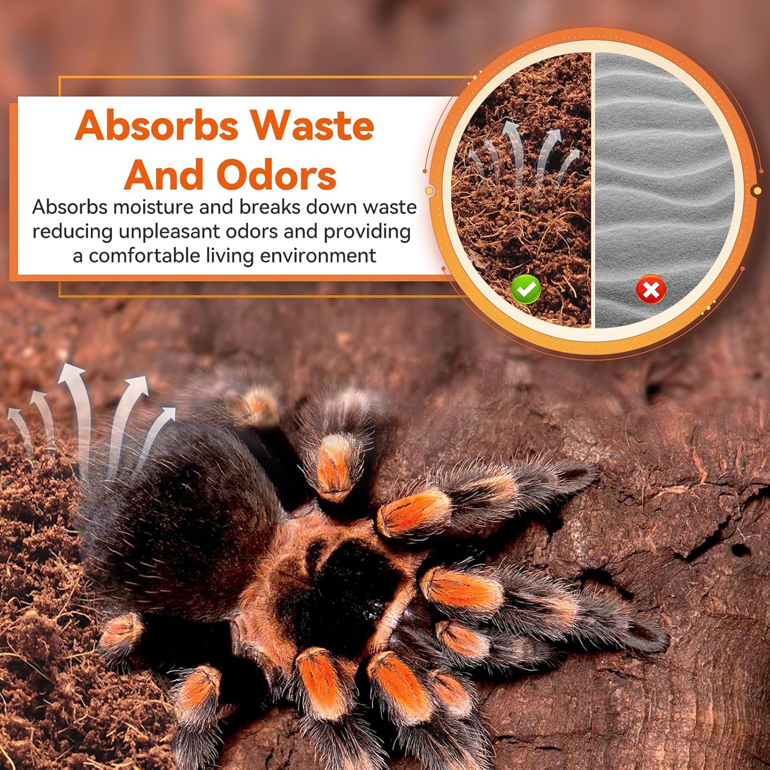 - Odorless & Decomposes Waste: This coco fiber substrate can quickly absorb water and waste while safely decomposing odors or waste, reducing unpleasant smells; This animal substrate not only keeps the living environment of pets clean and comfortable but also keeps your living environment away from odors; Regularly spraying to maintain proper humidity levels