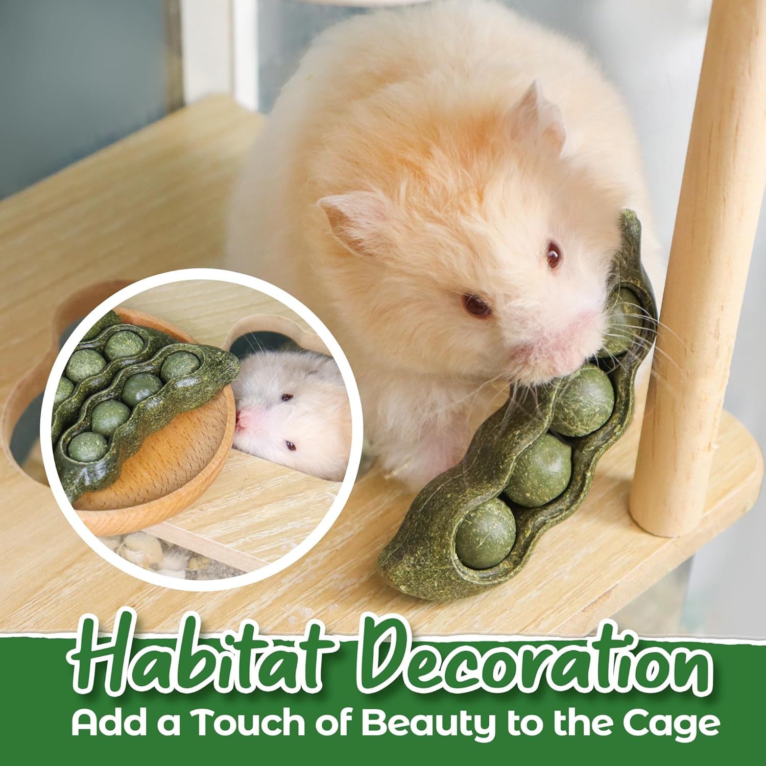 - [ Habitat Enrichment ]: Featuring a vivid peapod shape, the adorable chew toy can also enrich your pet's living habitat