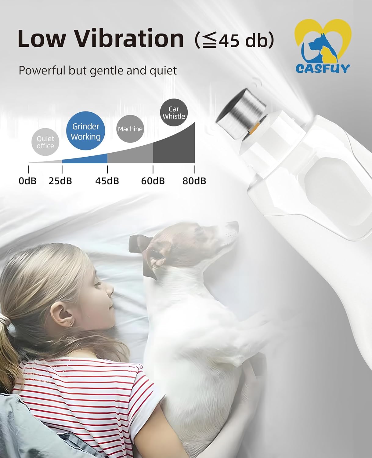 - Low Vibration, Gentle and Quiet: Comes with advanced diamond bit, Casfuy quiet nail grinder delivers low vibration, making it a gentle and quiet grooming tool that dogs of all sizes can enjoy, offering your pet a comfortable and relaxing grooming experience.