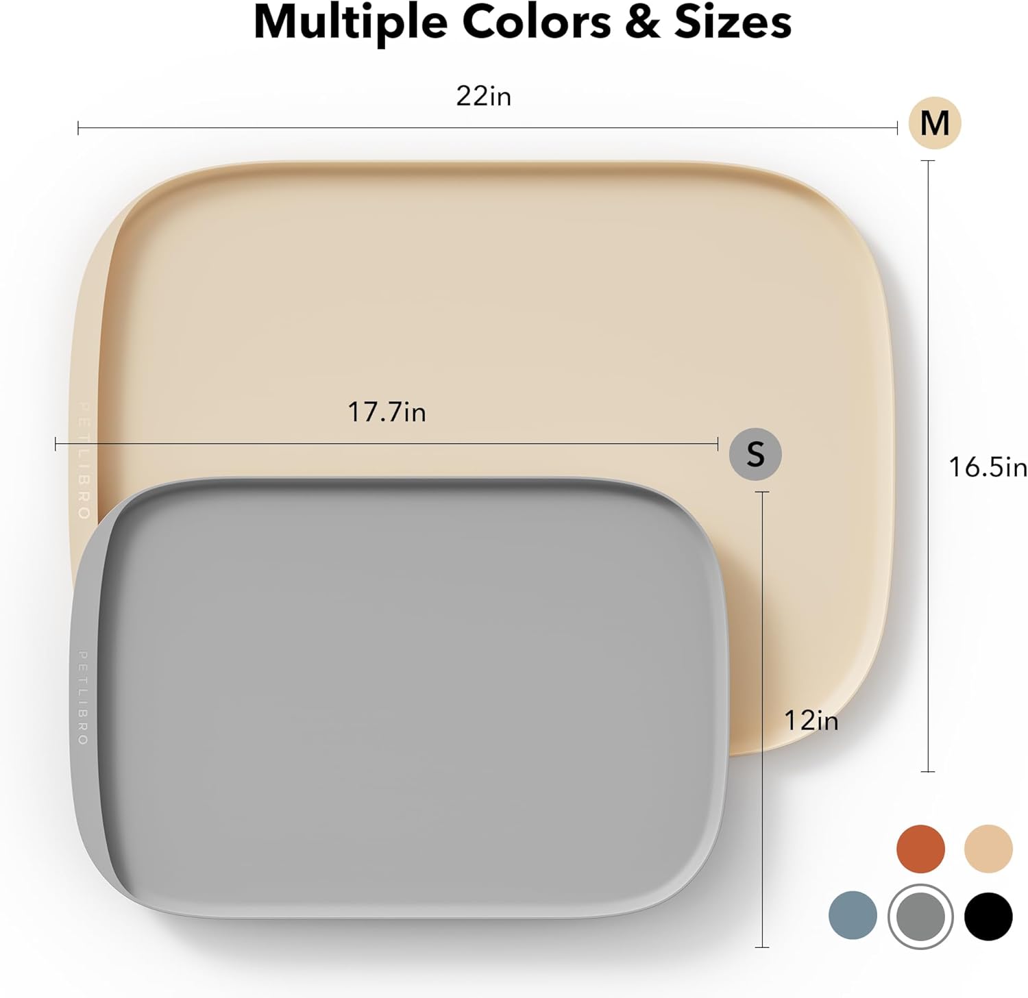 - A Perfect Fit For Every Pet And Bowl: With a range of sizes and colors to choose from, the Cove food mat is a versatile addition to any pet feeding station. The small mat measures 17.7 Γ 12 in, while the medium option measures 22 Γ 16.5 in. Not only do they fit perfectly with the PETLIBRO range of smart feeders and fountains, but they're compatible with various bowls and accessories too.