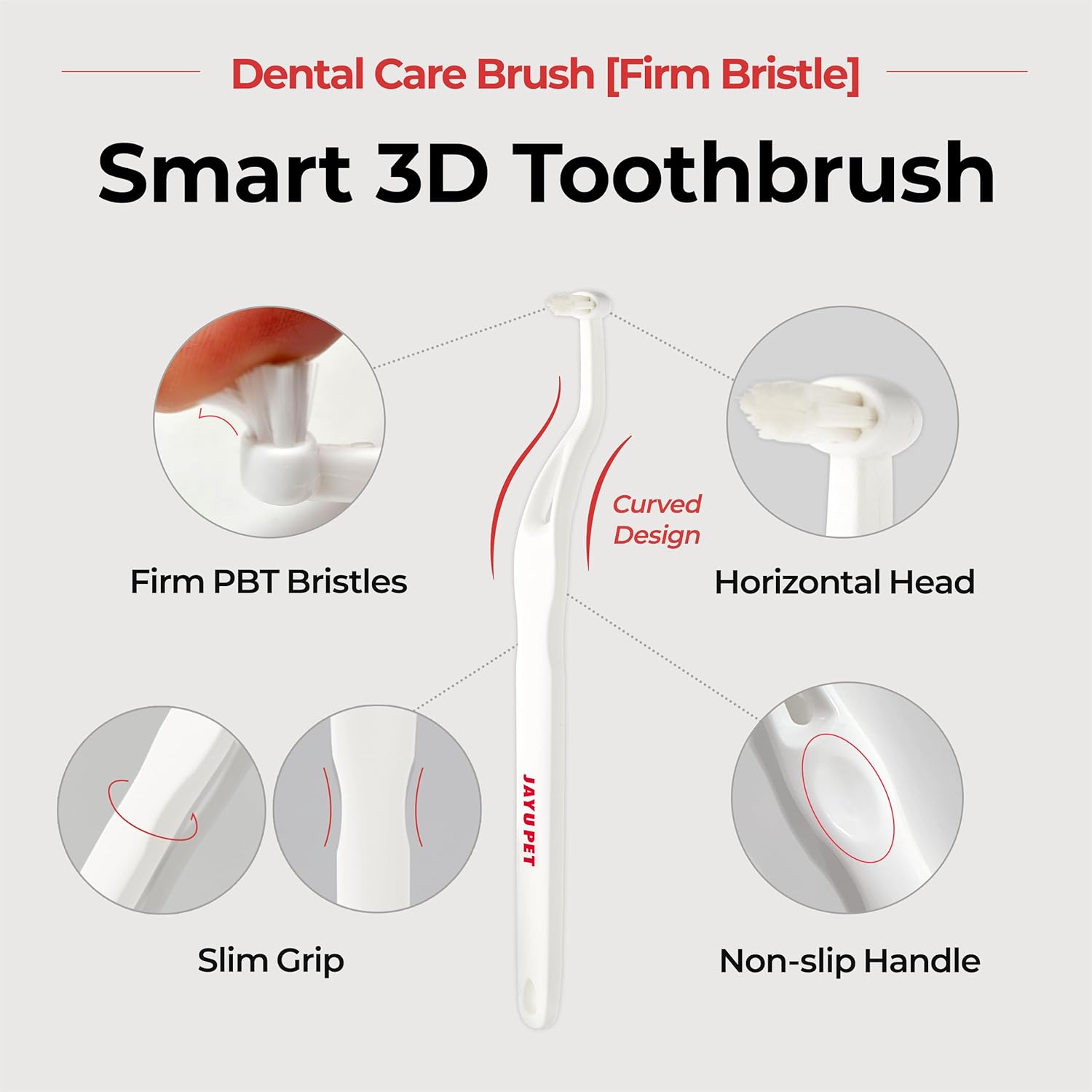 JAYU PET Dental Care Brush (Firm Bristles) 1ea - Resilient Dog Toothbrush, Cat Toothbrush for Tartar & Plaque Removal, Horizontal Head and S-Curved Body