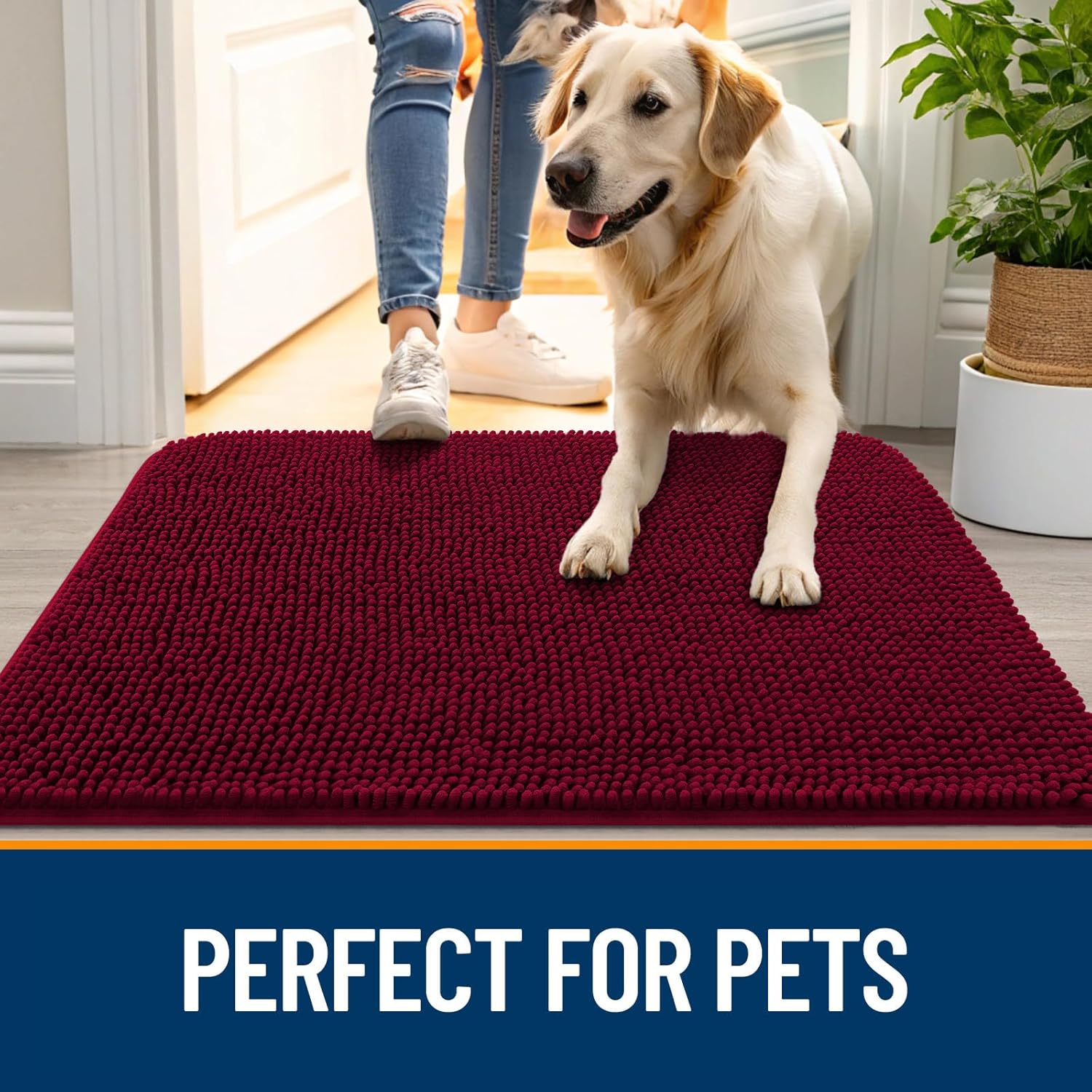 - [LUXURIOUSLY SOFT CHENILLE] Treat yourself and your furry friends to unparalleled comfort with the OLANLY Chenille Dog Door Mat. The premium plush pile offers a soft, cozy feel under your feet and provides extra warmth for your pets on chilly floors. Expertly crafted for enduring quality, this mat effortlessly blends opulence with durability.