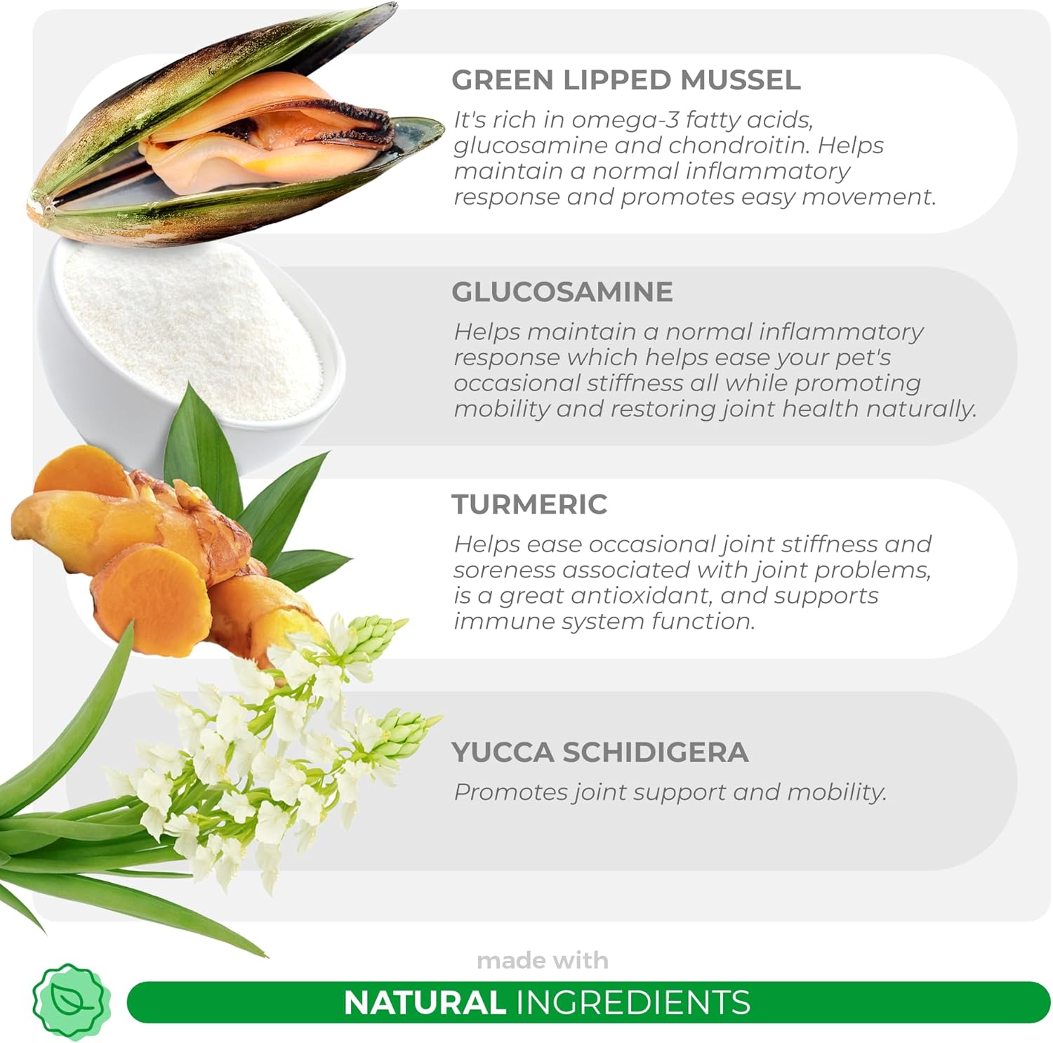 Hip and Joint Supplement for Dogs - with Glucosamine, Green Lipped Mussel, Turmeric, Chondroitin, Fish Oil, MSM and Yucca Schidigera for Dog Joint Relief & Mobility.