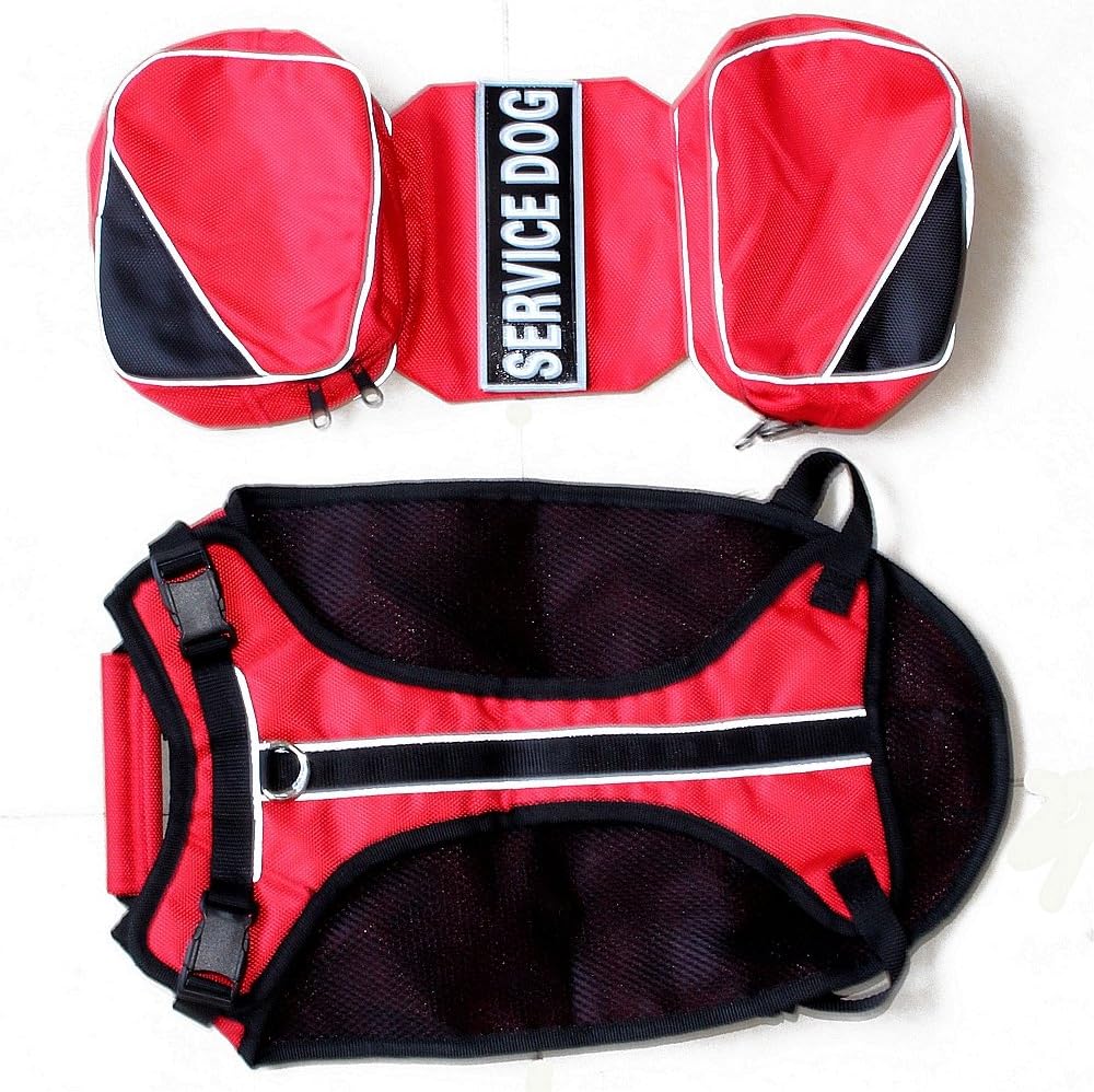 Serijoars Dog Vest Harnesses with Saddlebag Backpack for Camping & Travel - Reflective Hound Hiking Backpack Saddle Bag - Lightweight Vest Harness for Medium & Large Dogs (Red, S)