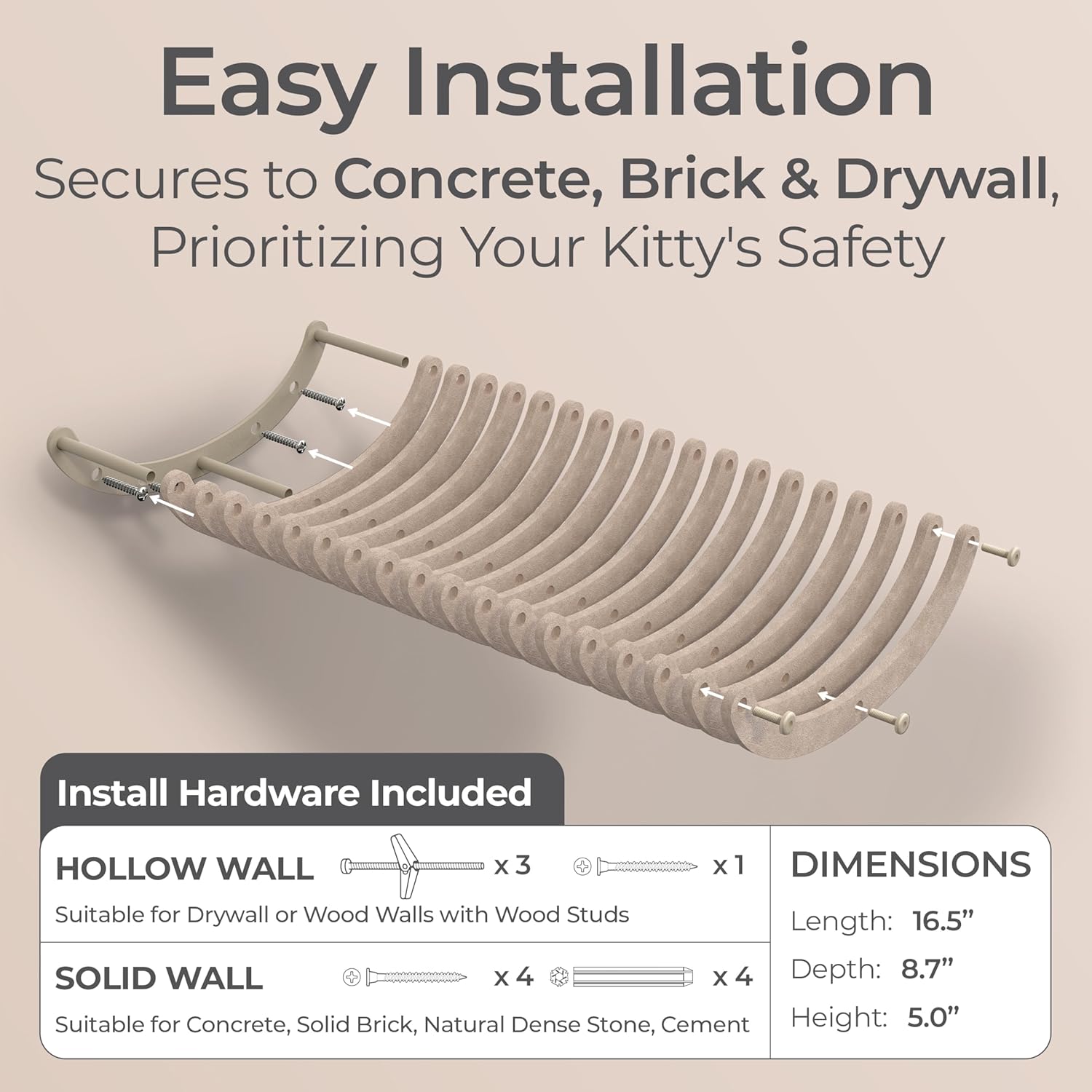 - Effortless Paradise: This cat hammock and wall bed includes all installation hardware, allowing your fur-baby to start exploring right away. Our cat climbing shelf securely attaches to concrete, cement, brick, dry wall and more ensuring your catβs safety.