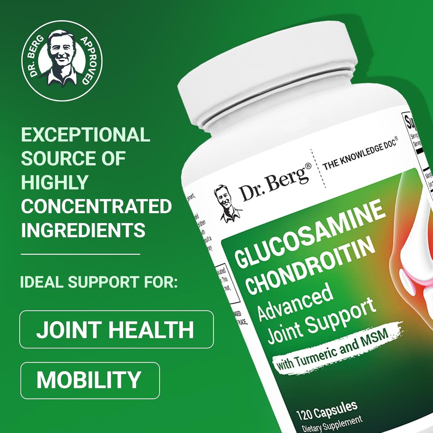 - 𝗦𝗨𝗣𝗣𝗢𝗥𝗧𝗦 𝗛𝗘𝗔𝗟𝗧𝗛𝗬 𝗝𝗢𝗜𝗡𝗧 𝗙𝗨𝗡𝗖𝗧𝗜𝗢𝗡 & 𝗠𝗢𝗕𝗜𝗟𝗜𝗧𝗬 - Dr. Berg's chondroitin & glucosamine nutritional supplement contains 1500 mg of glucosamine sulfate and 150 mg of chondroitin sulfate per serving. This powerful formula also includes MSM, a high-quality turmeric extract, Boswellia and more to support healthy joints and to provide occasional discomfort relief.