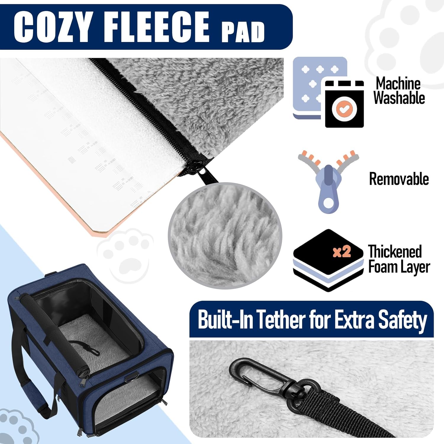 - Secured with auto-locking zippers, your pet can't escape easily by pushing against the zipper from the inside. An inner tether for extra safety. A reflective stripe on the side helps you feel at ease when you walking the dog at night
