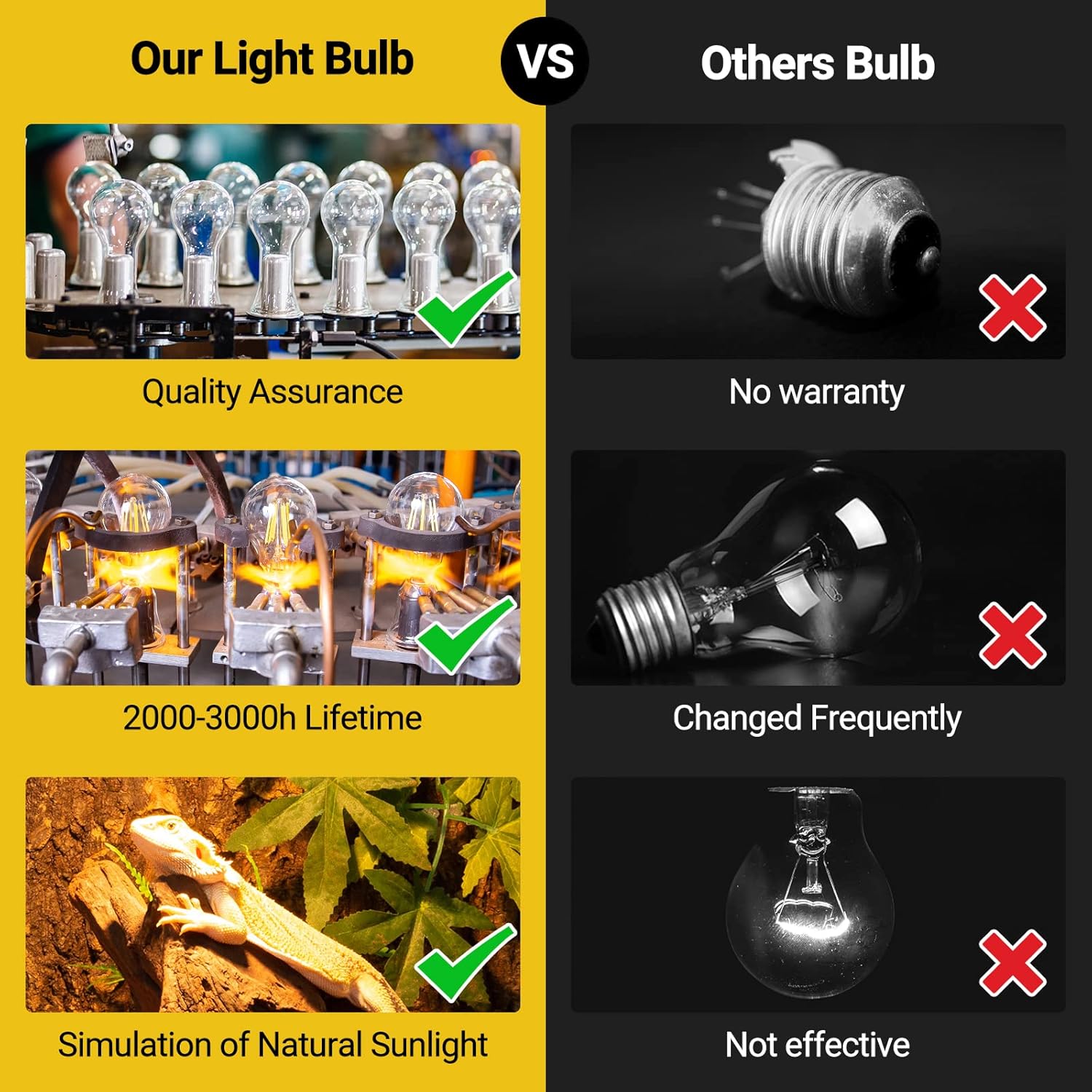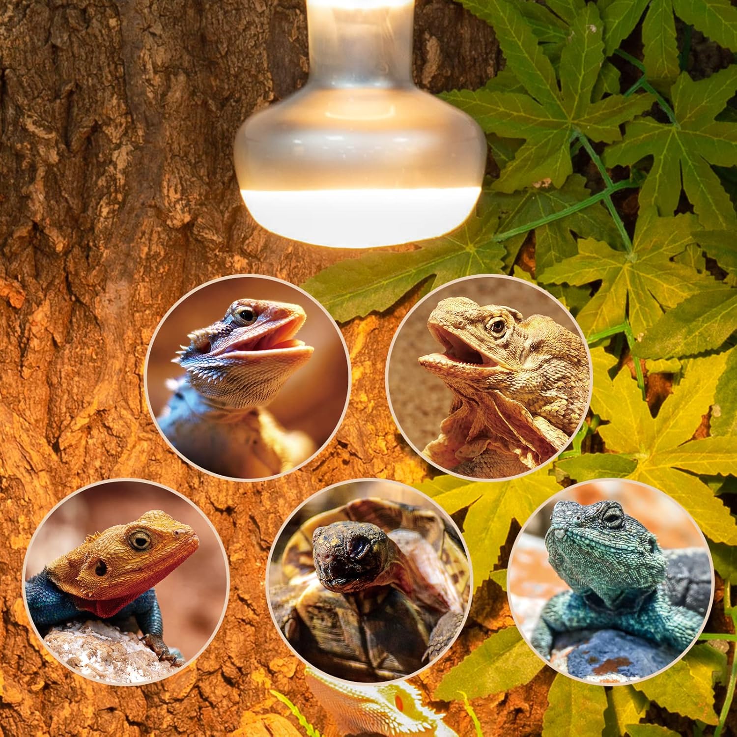 - γSimulating Natural LightγThis heat lamp simulates natural sunrise and sunset to achieve even and quick heating and bring your pet back to nature. The reptile heat bulb provides soft heat light and UVA for reptile living, promote the appetite of your pet, create a healthy environment for reptiles, ensure their healthy and natural growth.