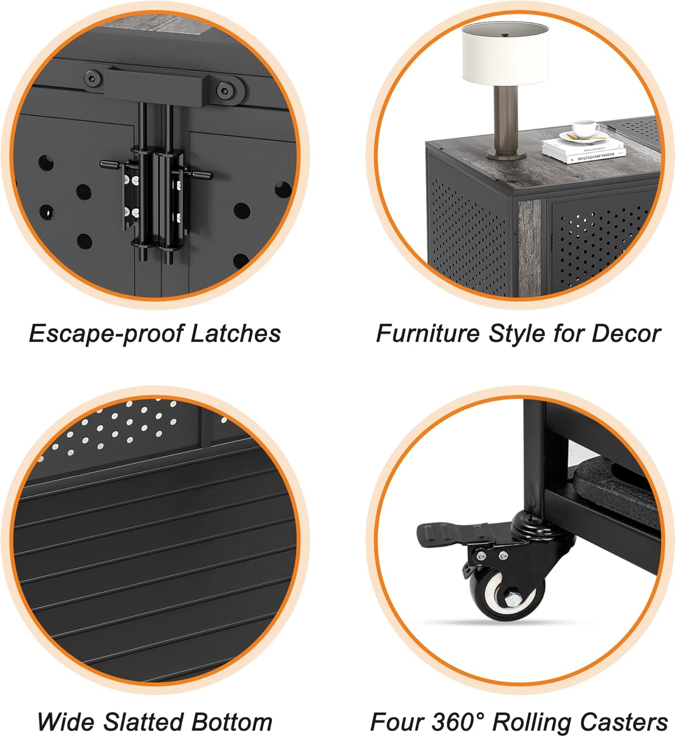 - [Enclosed Design with Ventilation Holes] Unlike traditional crates with metal bars, this innovative design features sturdy panels with strategically placed small holes(Diameter 0.5 inch, specifically designed for dogβs teeth). This design not only prevents the harm caused by bites but also provides ample ventilation for your animal companions.