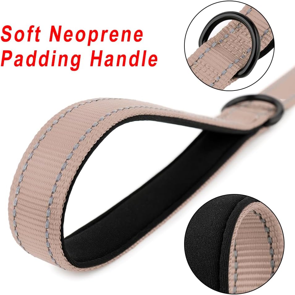 PLUTUS PET Short Training Dog Leash with Padded Handle for Medium Large Dogs,18 Inch Heavy Duty Strong Traffic Leash with Carabiner Clip for Climbing Walking or Guiding Blind(18”,Beige)