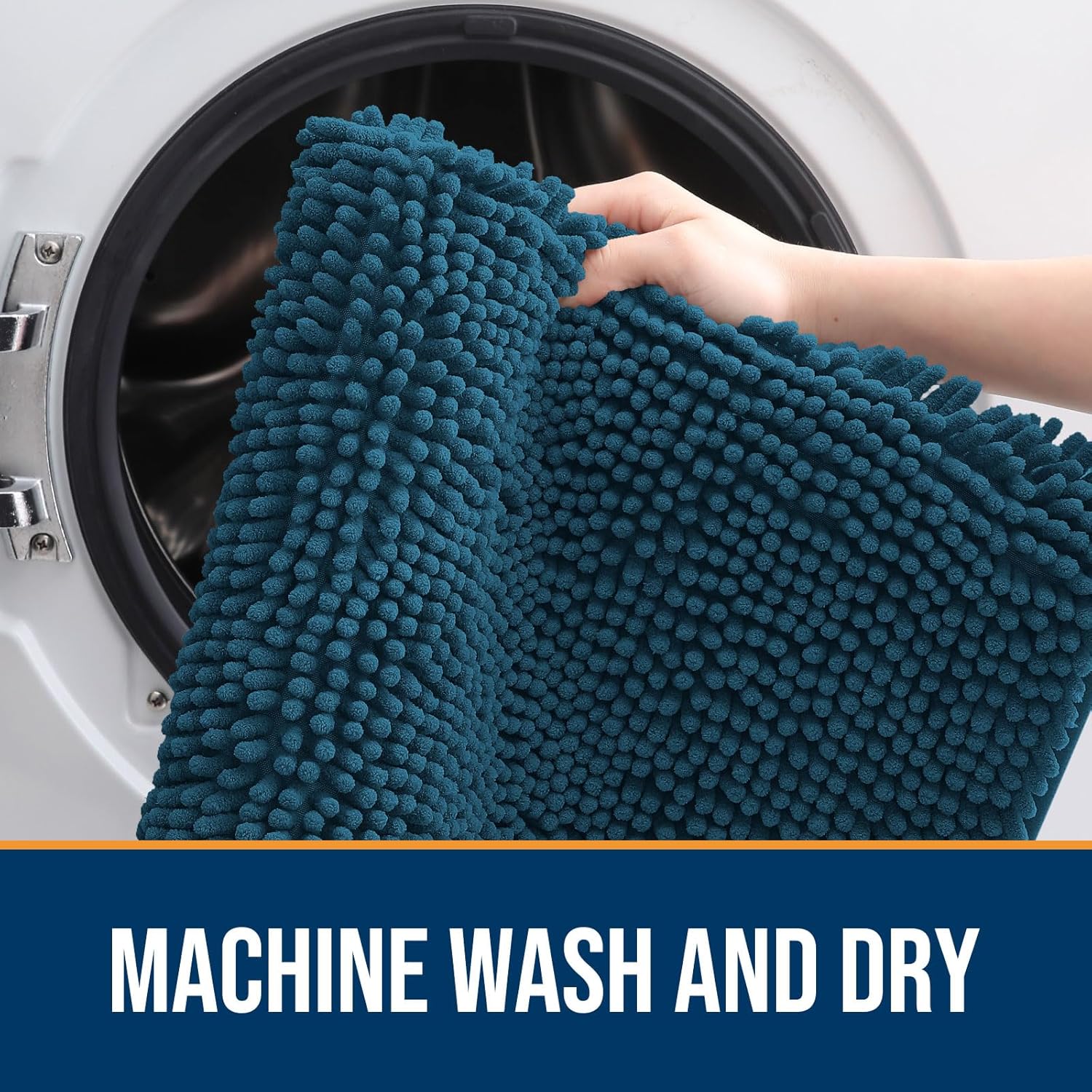 OLANLY Dog Door Mat for Muddy Paws 30x20, Absorbs Moisture and Dirt, Absorbent Non-Slip Washable Doormat, Quick Dry Chenille Mud Mat, Entry Indoor Entryway Carpet for Inside Floor, Atlantic Blue