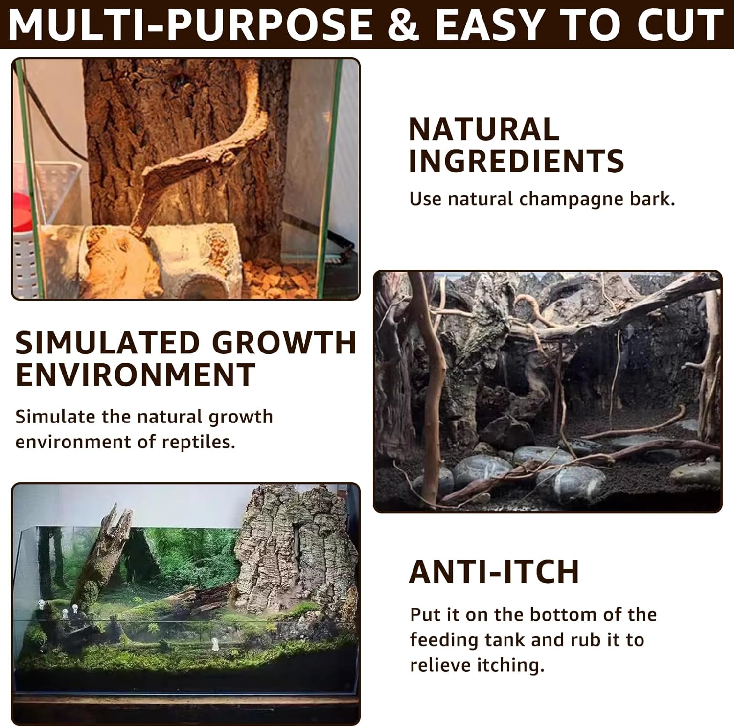 - NATURAL MATERIALS: The cork bark background is made from natural champagne bark to create a natural safe habitat for reptiles. It's like living in the wild, so they can live and play freely.