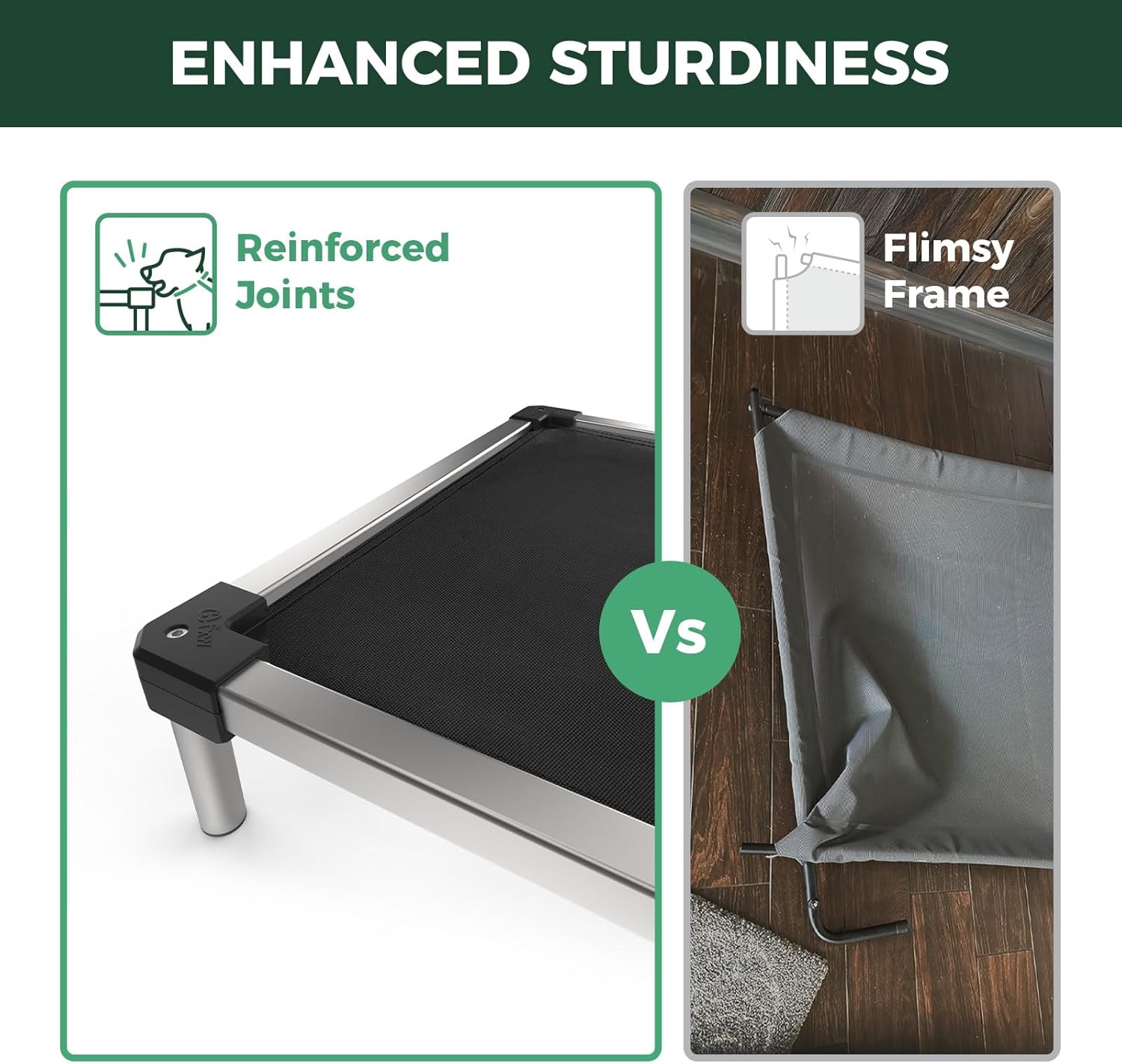 - Indestructible & Dog-Safe: Crafted with a premium aluminum alloy frame and chew-proof edges, this bed withstands aggressive chewers while keeping your pupβs gums safe and happy.