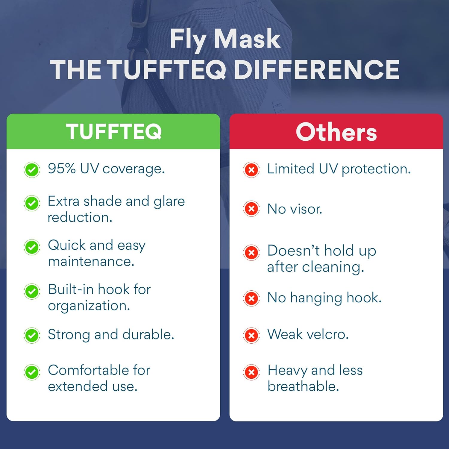 - EASY MAINTENANCE: The UV fly masks for horses are a breeze to clean. The high quality nylon material is tear resistant, lightweight and easy to clean - either hose them off or put them in the washing machine along with other equestrian products.