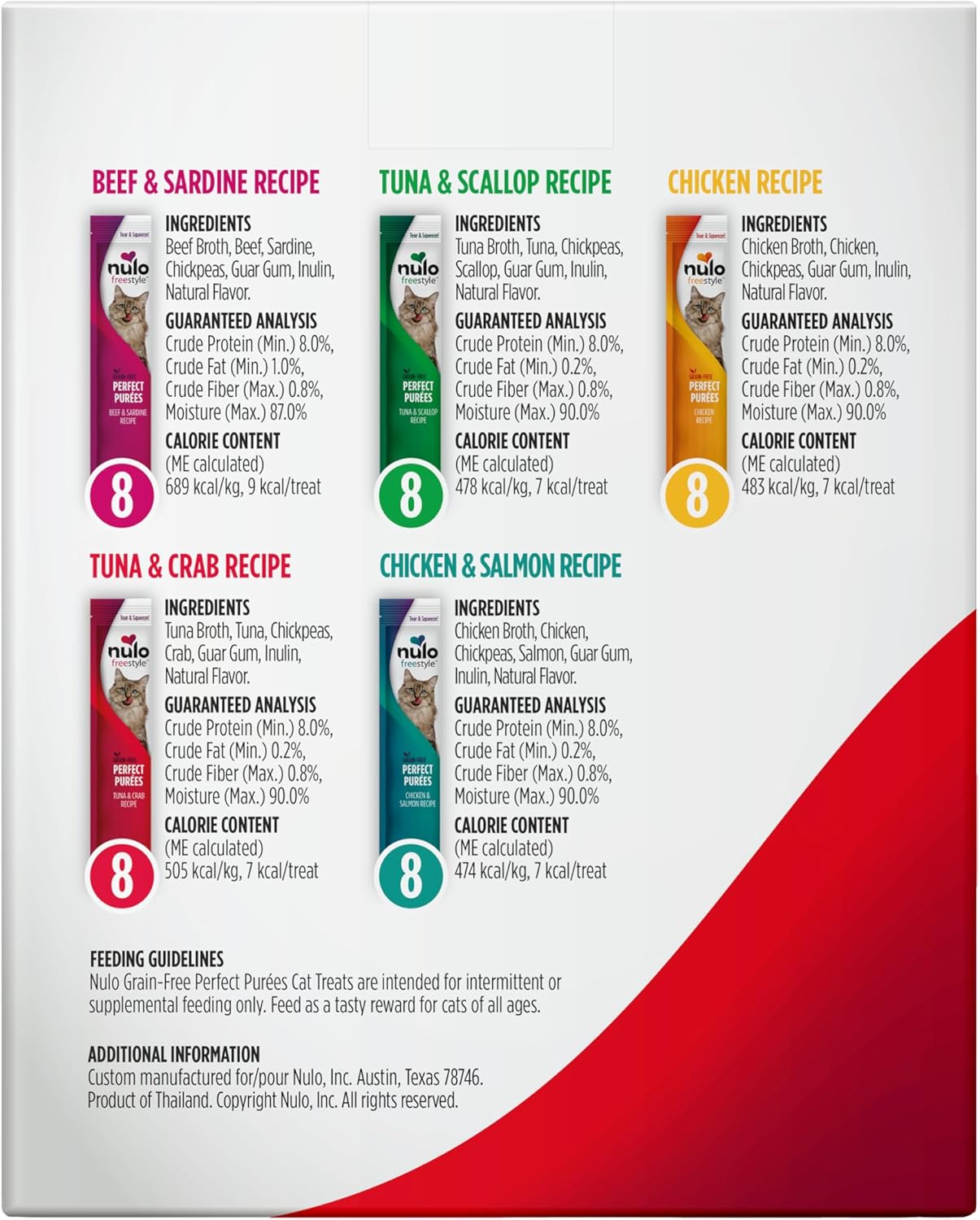 Nulo Freestyle Grain-Free Perfect Purees Premium Wet Cat Treats, Squeezable Meal Topper for Felines, High Moisture Content to Support Cat Hydration, 0.5 Ounce, Variety Pack