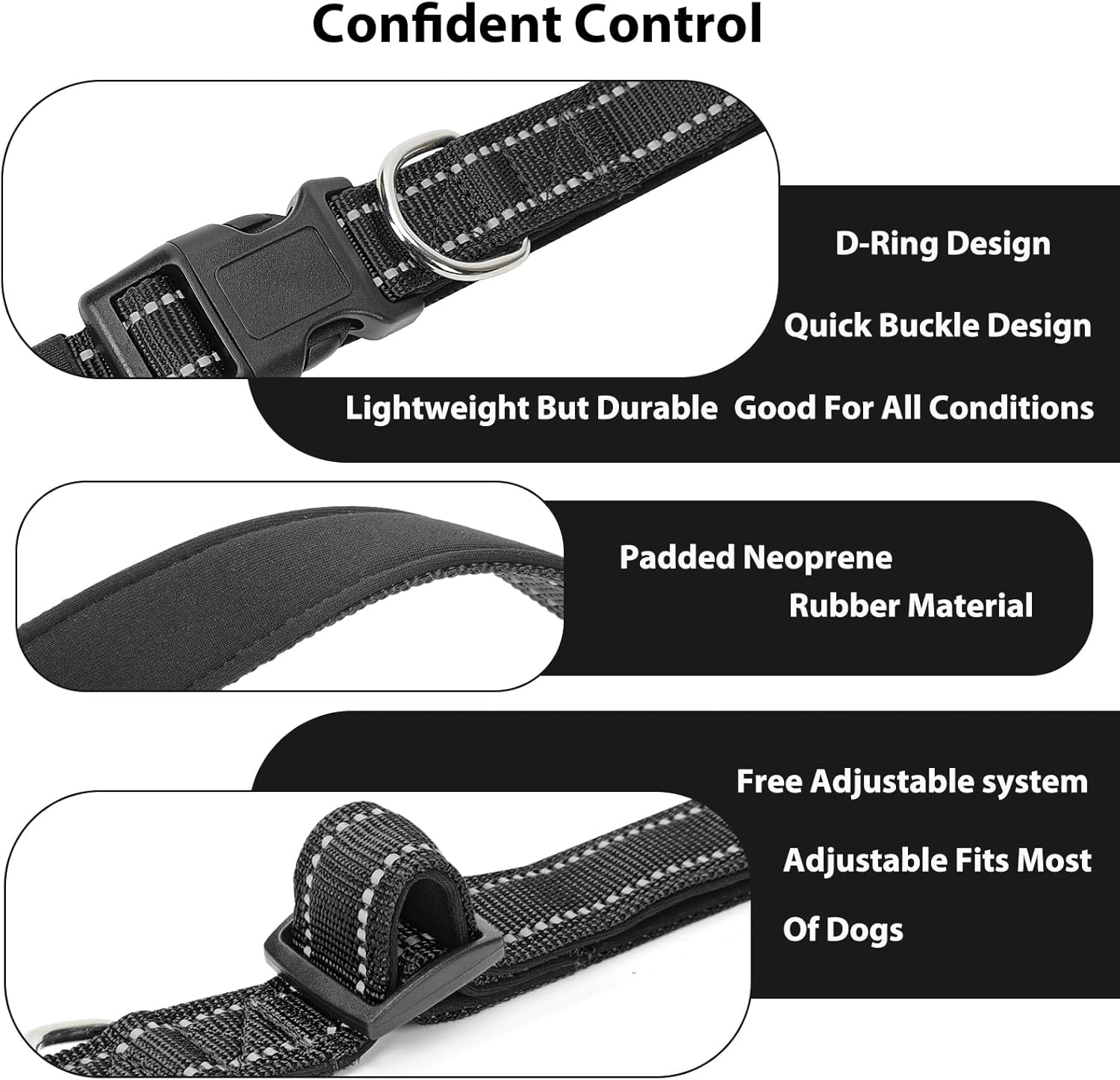 Reflective Dog Collar Padded with Soft Neoprene Breathable Quick Release Basic Dog Collars for Puppy Small Dogs Girl Boy Black