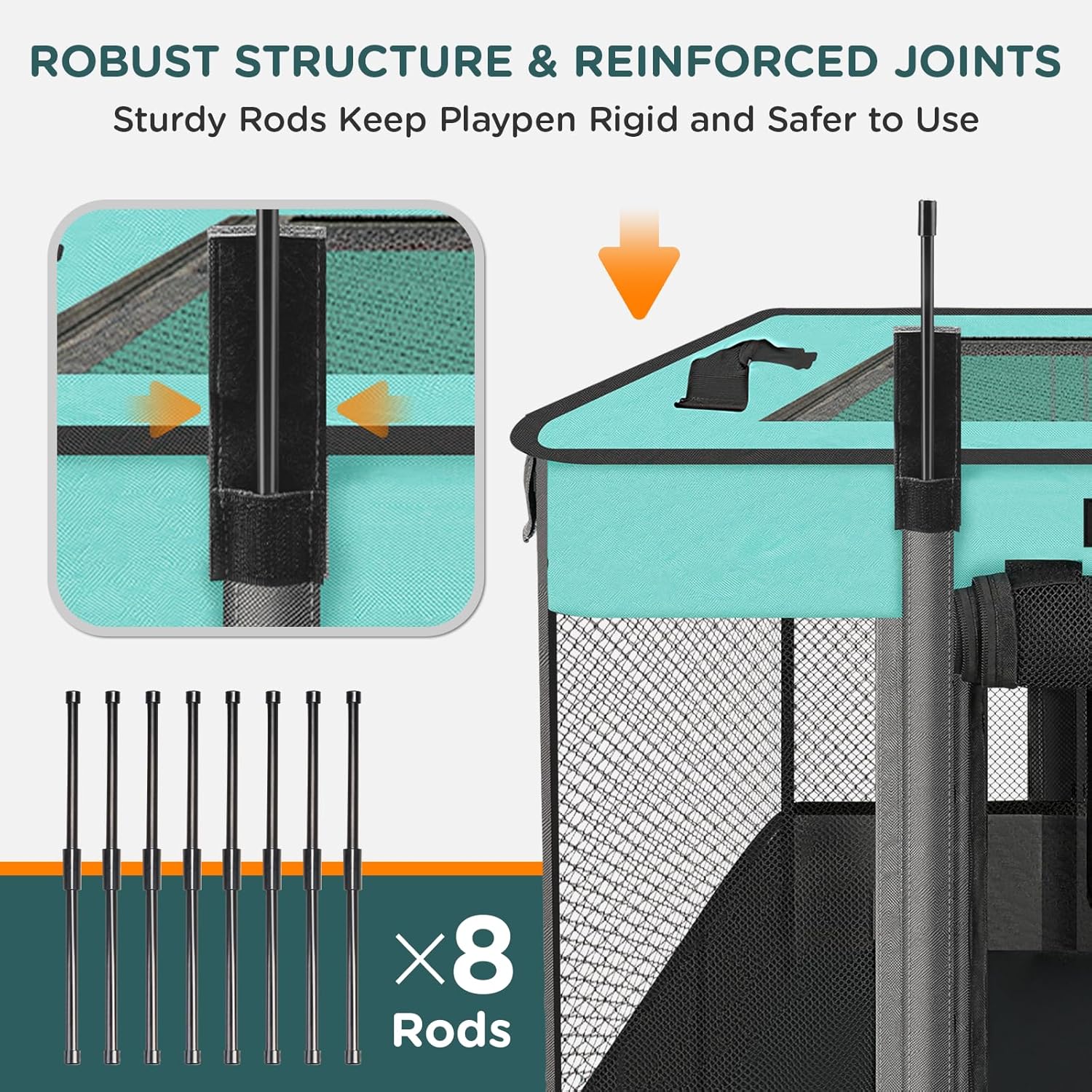 - Safety & Durability: Foltable playpen for small Anima is made of high-quality 600D Oxford cloth, which is wear-resistant, soft to the touch, and odorless. We have reinforced the joints and corners of the dog playpen to ensure the safety of your pet. (The portable pet playpen is lightweight, and you can place heavy objects inside the pet playpen to increase stability, but it is not suitable for use with aggressive pets)