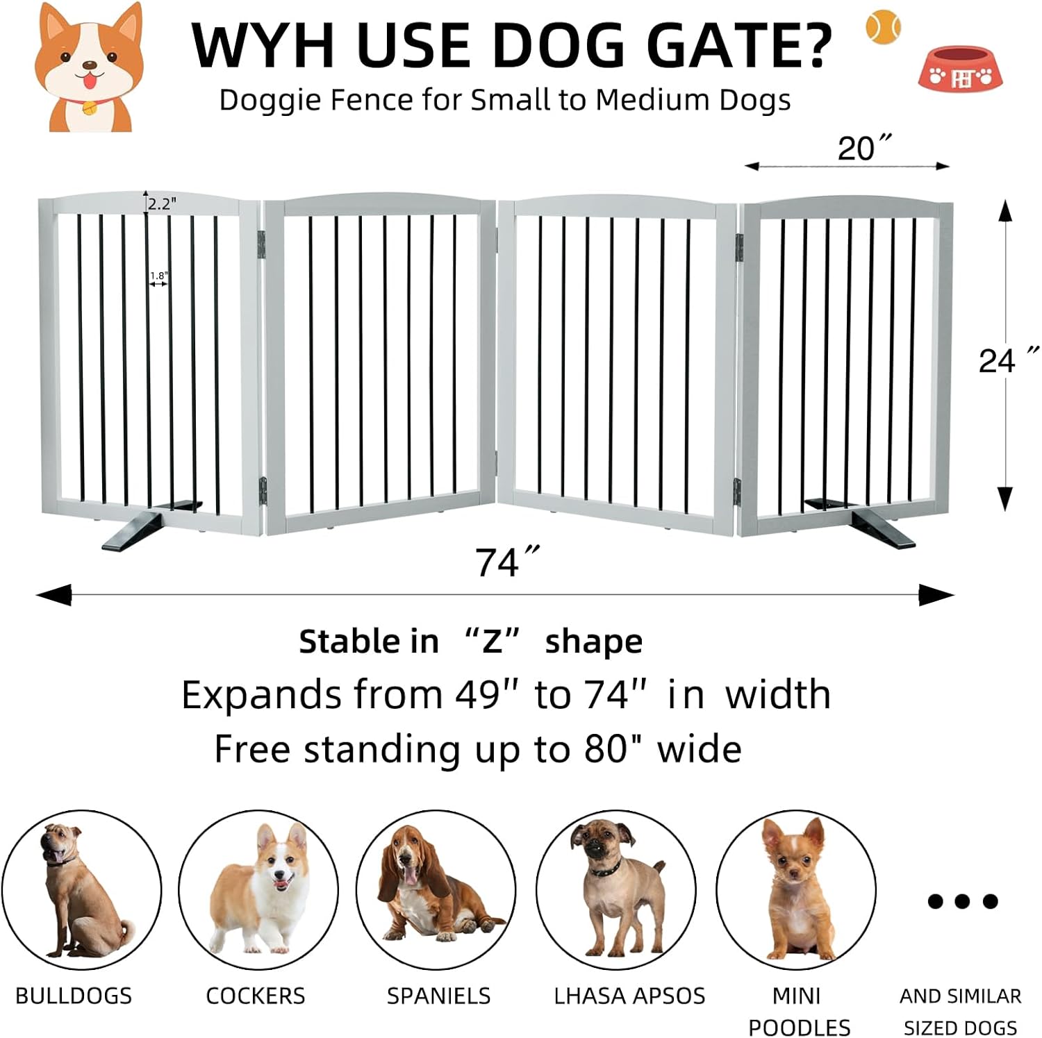 ZJSF Freestanding Panel Dog Gate for Indoor, Doorways,Stairs, or Hallways,Foldable Wooden White Pet Gates for House,Pet Gate for Dogs,Dog Fence, Puppy Gate,Support Feet Included,24 "Height-4 Panels