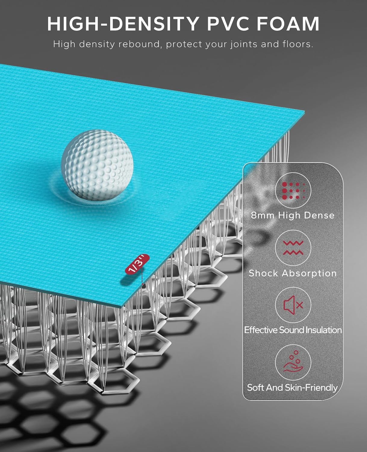 - Extra Cushion & Comfortable:Our large exercise yoga mat adopts high-density foam technology, up to 8mm thick (greater than ⅓ inch).Very soft and skin-friendly. High-density workout mat can protect your knee and other joints during intense aerobic exercise, and play a role in shock absorption. Excellent durability, tear resistance and wear resistance, designed for high-intensity training. It can also reduce noise and protect the floor