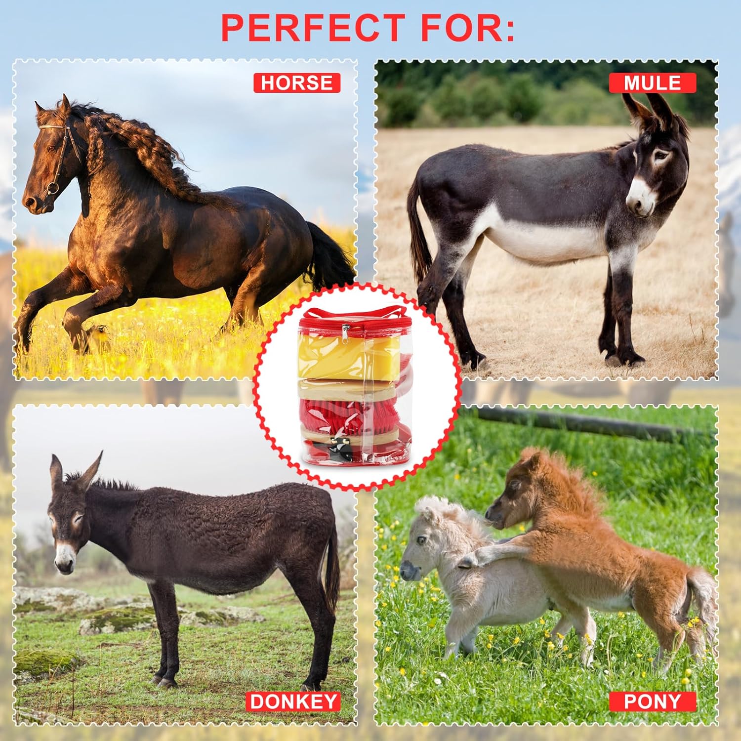 - Reliable beauty handbag:The horse brush includes a foldable bag that conveniently holds all the essentials for horse care and suitable for daily grooming activities; The foldable bag comes with a zipper and handle design, making it easy to carry when going out; Your horse brush set can be stored together for easy storage, keeping your beauty tools in order