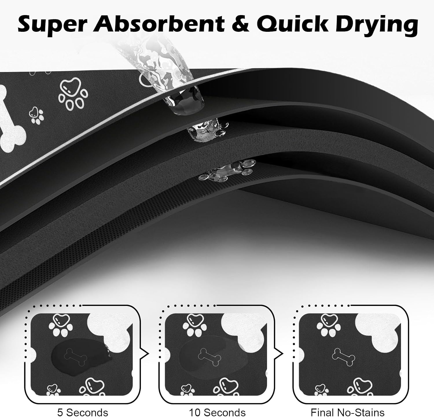 Pet Feeding Mat,Rapid Absorbent Mats for Dog Cat Food, Dog Placemat Water Bowl Mat with Rubber Backing,Messy Drinkers to Protect Floors, Pet Accessories 17"×29" Black
