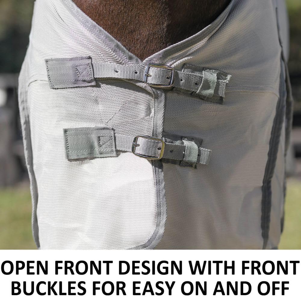 - 80% UV PROTECTION FOR ALL BREEDS β Expertly crafted with a 300D polyester interlock mesh, these fly sheets offer 80% UV protection, ideal for horses, ponies, and minis, ensuring their safety under the sun.