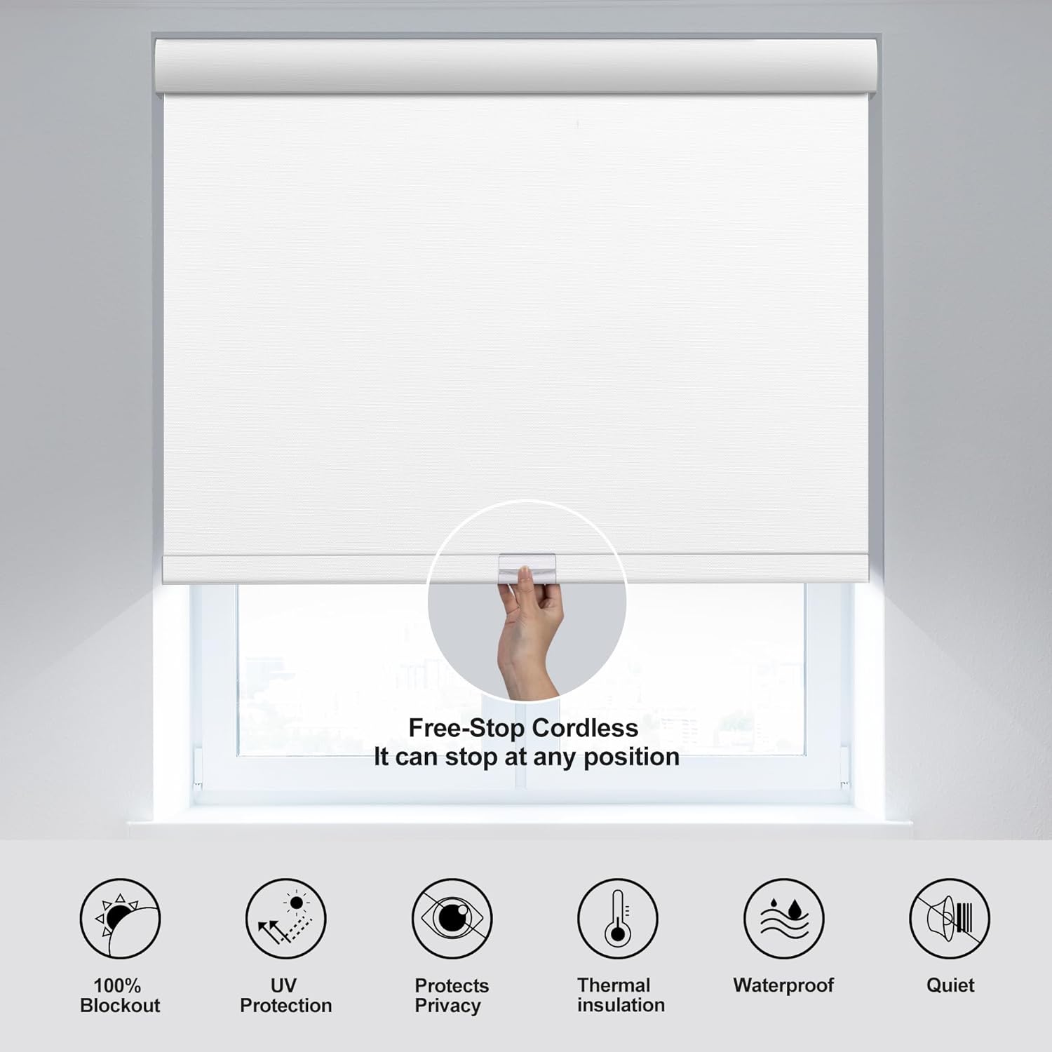 Boolegon Blackout Roller Shades for Windows,Cordless,Roller Blinds for Windows,Thermal Insulated Fabric UV Protection,Window Blinds Shades for Home,Office,Bedroom,Door,Blackout-Pure White,Custom Now