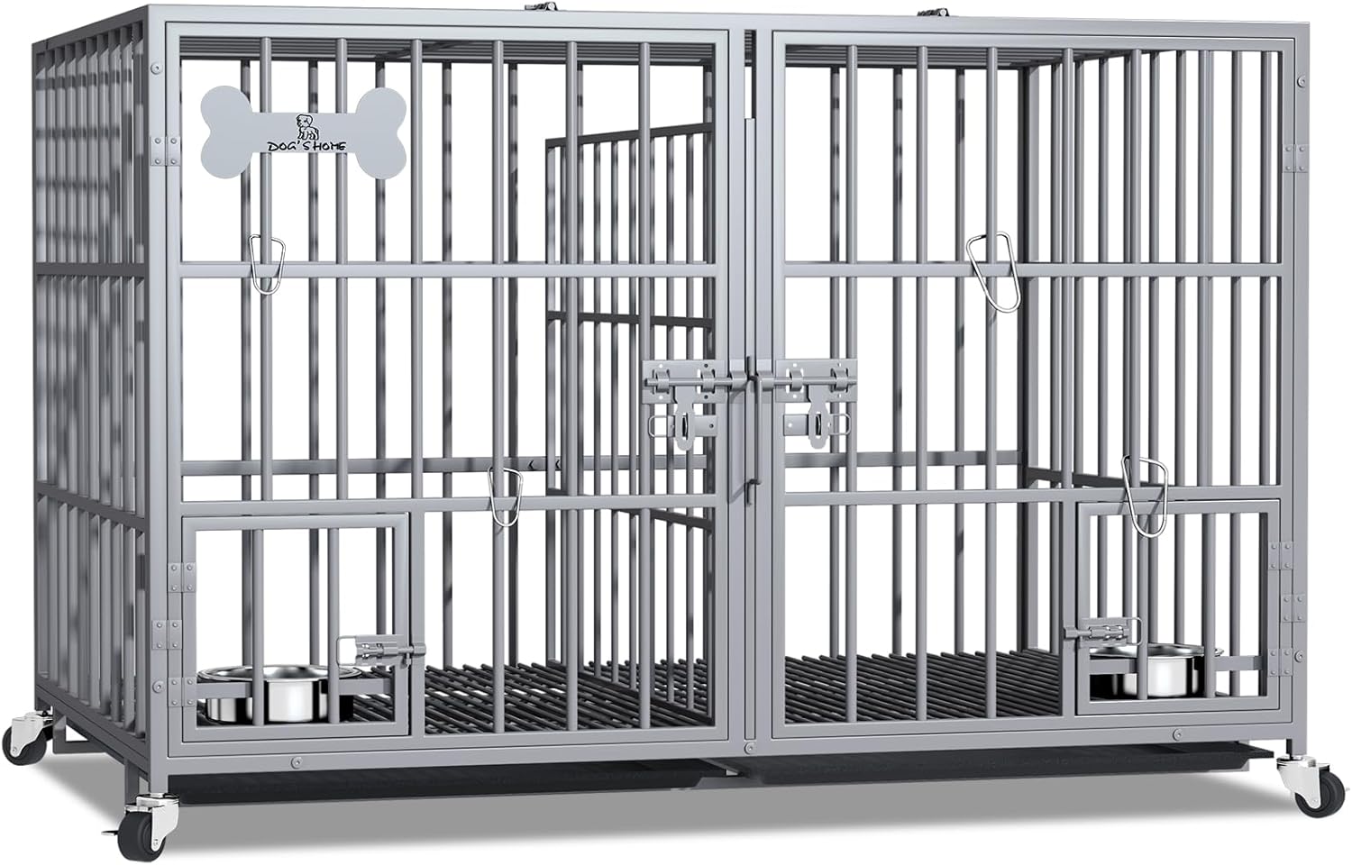- γEasy Access & FeedingγThe dog crate has double doors and a reversible top for easy access almost anywhere. The top is open for easy access. The kennel is additionally designed with 2 small feeding doors with locks. These doors allow quick and easy access to the stainless steel dog bowl, swing bowl, without having to open the front door for easy feeding. The dog kennel double door design is not only easy to get in and out of the kennel, but also good for you to interact with and feed your dog.