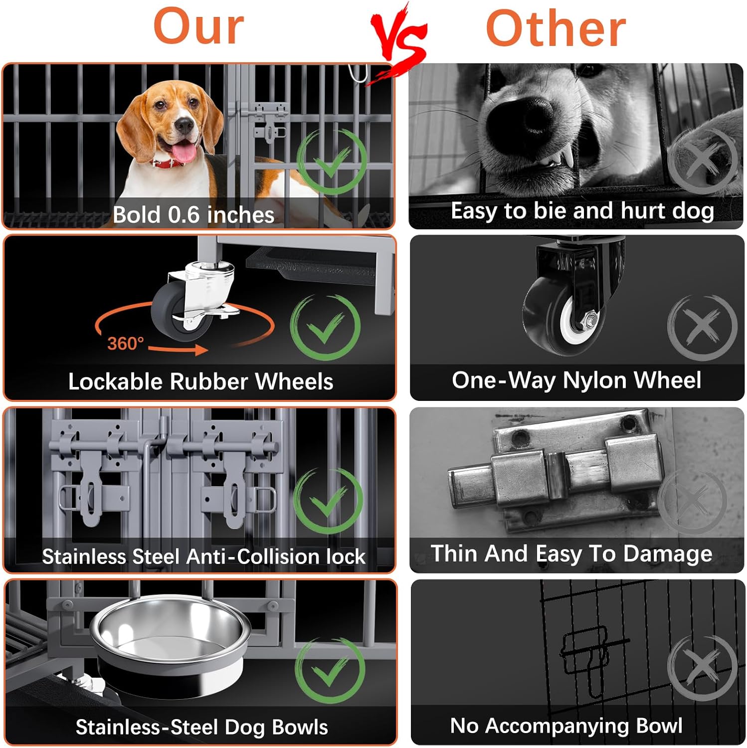 - γSpace Saving & StackingγThis dog crate can be folded into a compact size and can be stored in a narrow place when not in use. It also has a stackable function, if you buy multiple heavy duty dog crates, you can stack them to make a dog condo. Help you save more space. This stackable dog crate it helps to maximize the use of space.
