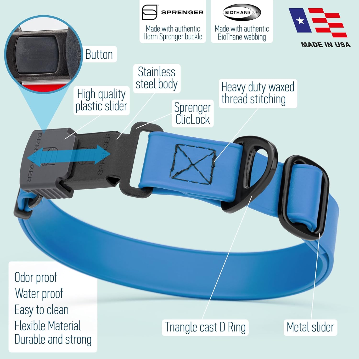 Dogline Biothane Waterproof Dog Collar with Herm Sprenger Black Stainless Steel Quick Release Buckle – Heavy Duty Tactical Durable Collar for Dogs – Comfortable and Safe Pet Collar W3/4" L12-19 Blue