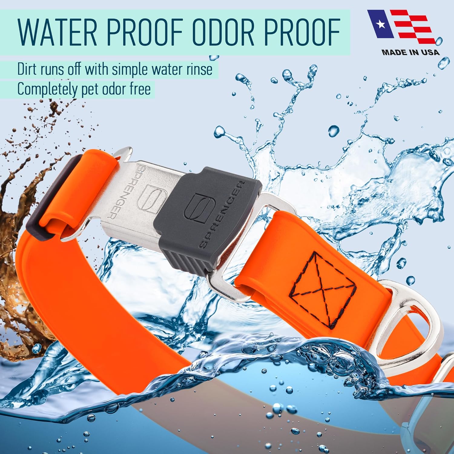 Dogline Biothane Waterproof Dog Collar with Herm Sprenger Stainless Steel Quick Release Buckle – Heavy Duty Tactical Durable Collar for Dogs – Comfortable and Safe Pet Collar, W 3/4" L 12-19", Orange