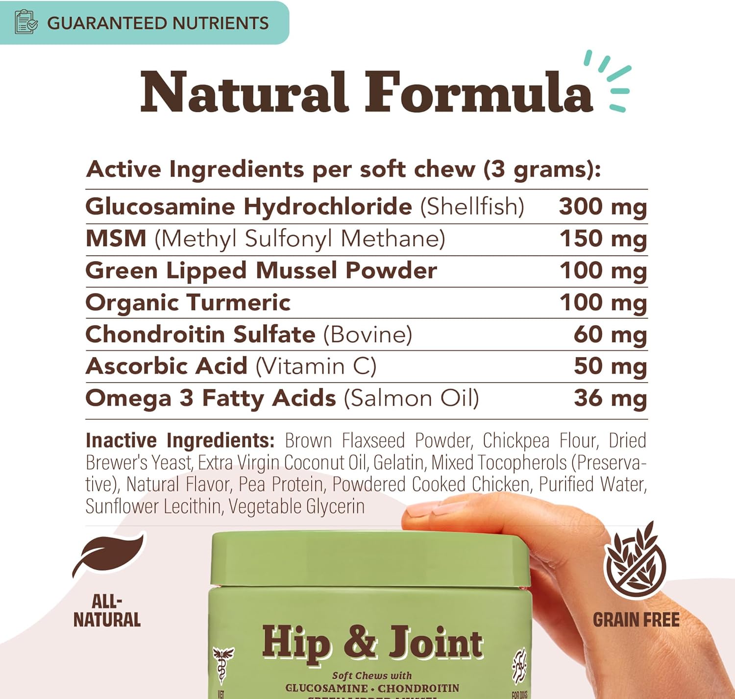 - JOINT CARE SUPERHERO: Our joint supplement for dogs offers natural benefits while being irresistibly tasty. Relieves stiffness, aids mobility, and supports overall wellness. Ensuring your furry friend's happiness and comfort with our hip and joint for dogs supplement.