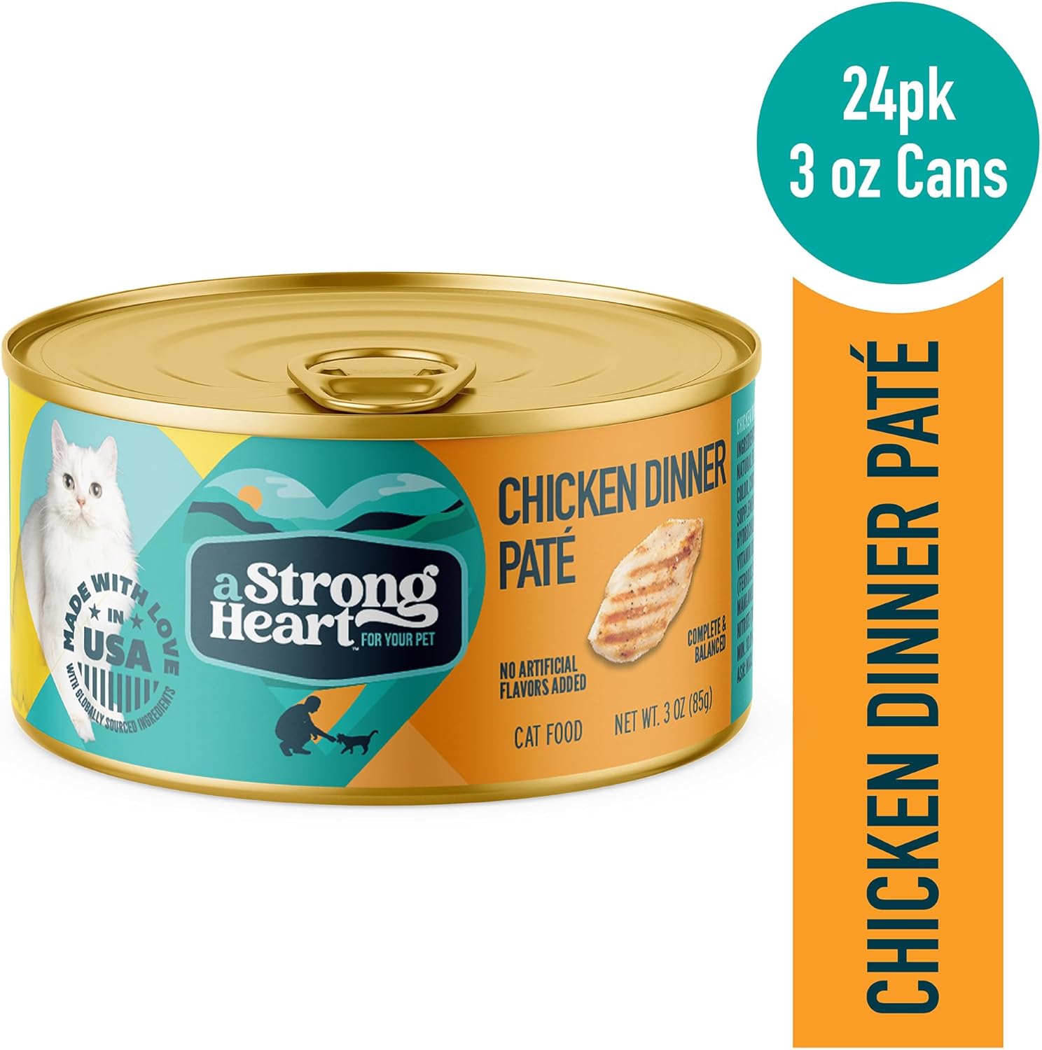 A Strong Heart Canned Wet Cat Food, Chicken Dinner Paté - 3 oz Cans (Pack of 24), Made in The USA with Real Chicken