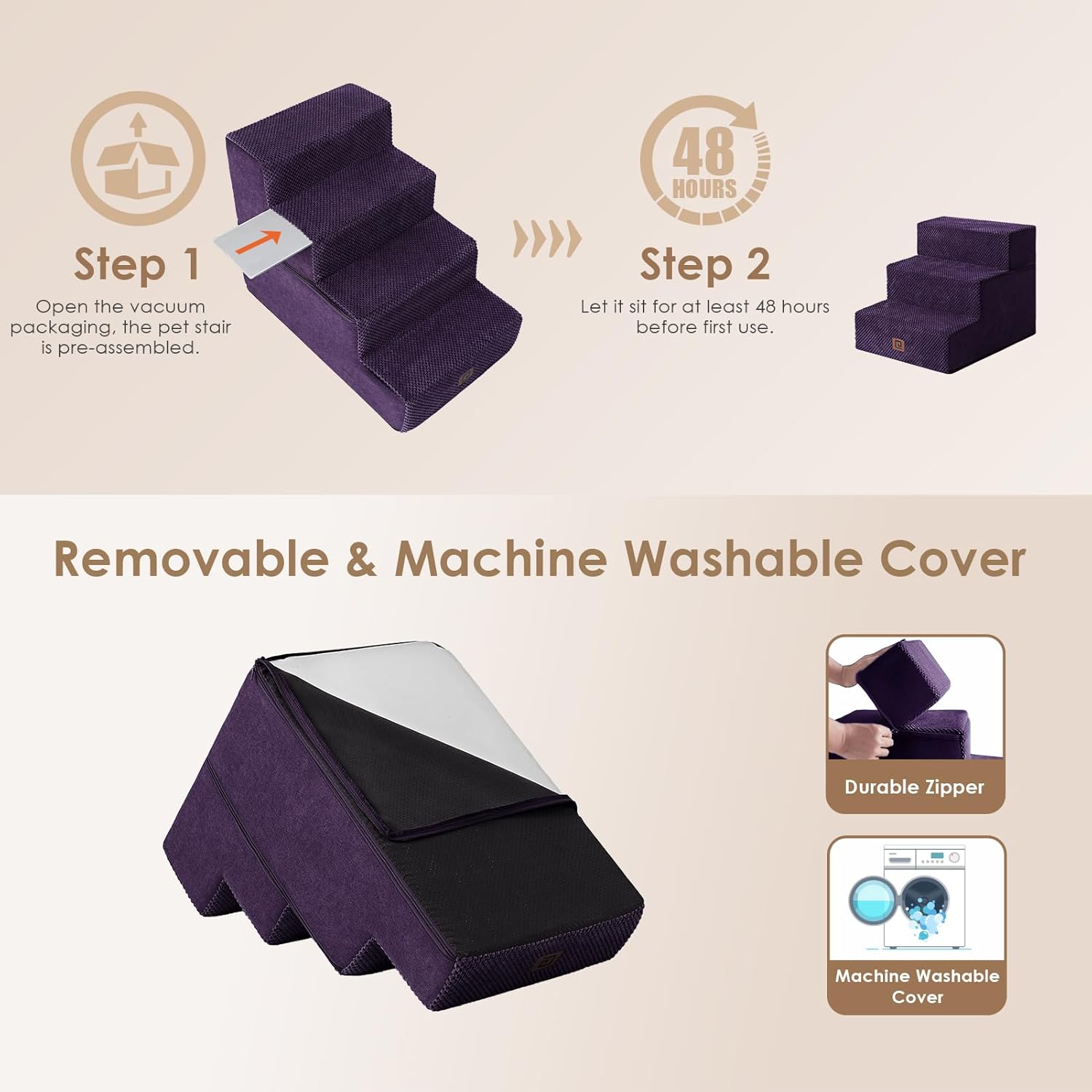 - EASY TO CLEAN - The dog step features a removable and washable cover, which can be cleaned by hand or in the washing machine. This saves you time and makes cleaning incredibly convenient.