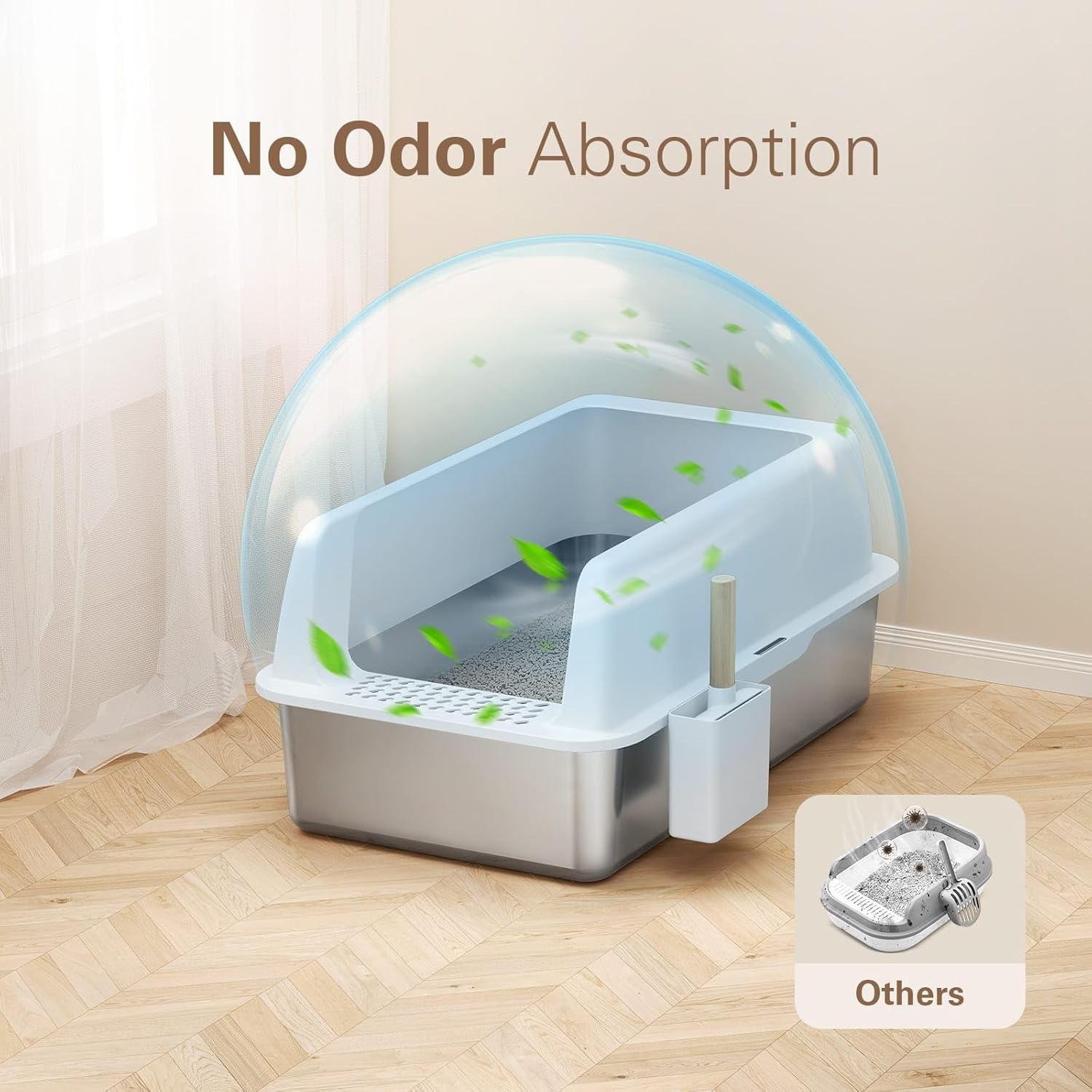 - 【Maintain a Clean Litter Area】: The stainless steel litter box with high sides designed with the unique filter pedal helps stop cat litter from getting tracked out, keeping the floor tidy and reducing litter waste. Plus, the attached litter scoop allowing for quick and efficient cleaning without hassle