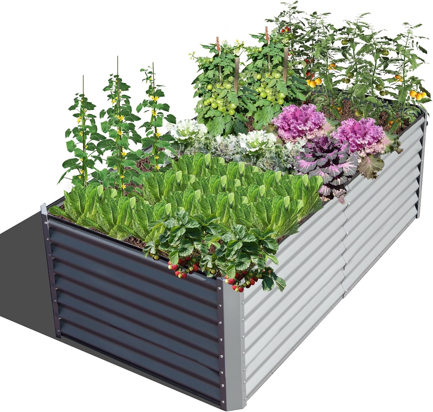 Domi Raised Garden Beds Outdoor, 6x3x2ft Thickening Tall Metal Rectangular Deep Root Box Planter for Vegetables, Flowers, Herbs, and Succulents 2" Deep w/ 256 Gallon Capacity - Silvery