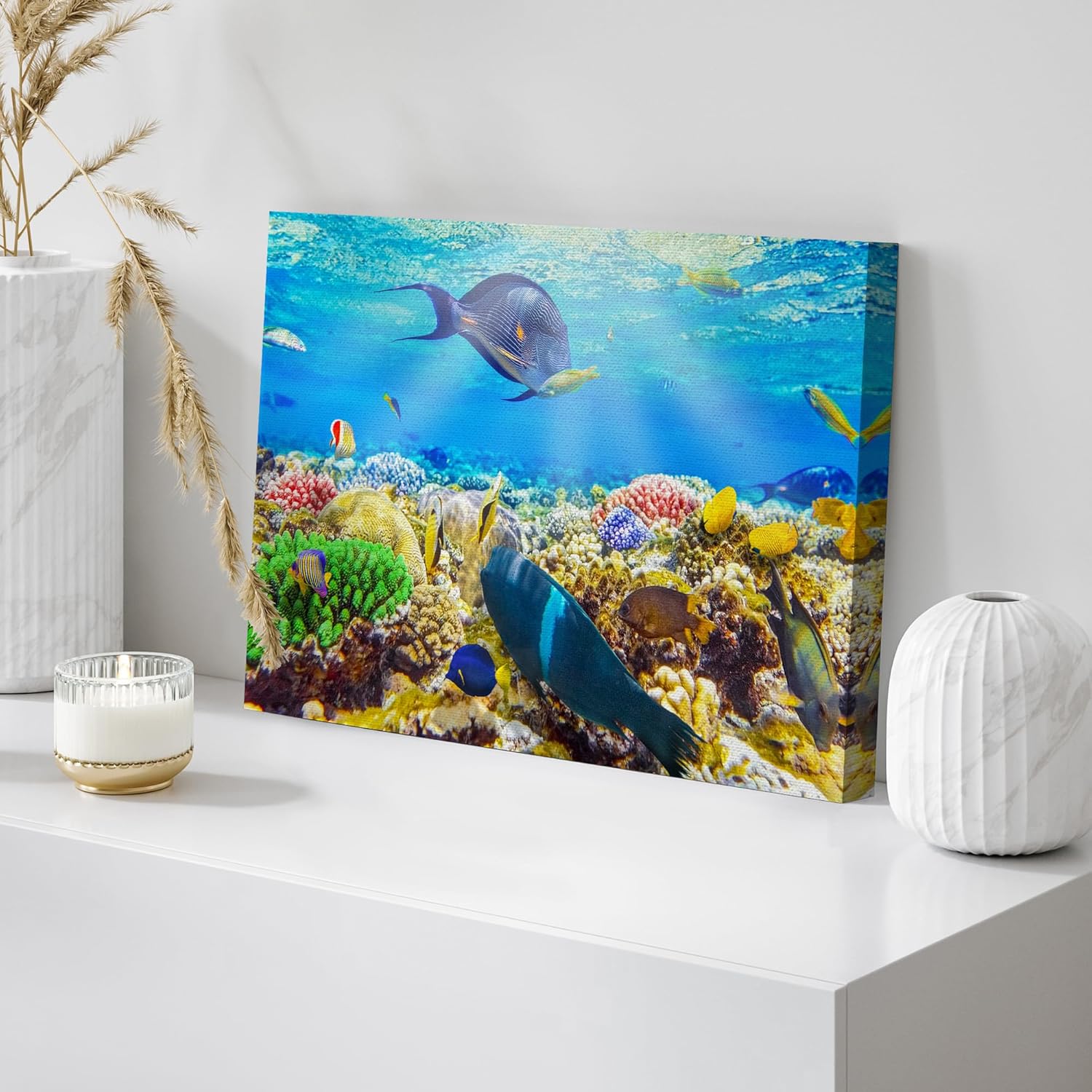 wall26 Canvas Print Wall Art Sunlight Ocean Sea Coral Reef Anemone Fish Nature Animals Photography Realism Rustic Scenic Landscape Wilderness Earth for Living Room, Bedroom, Office - 24"x36"