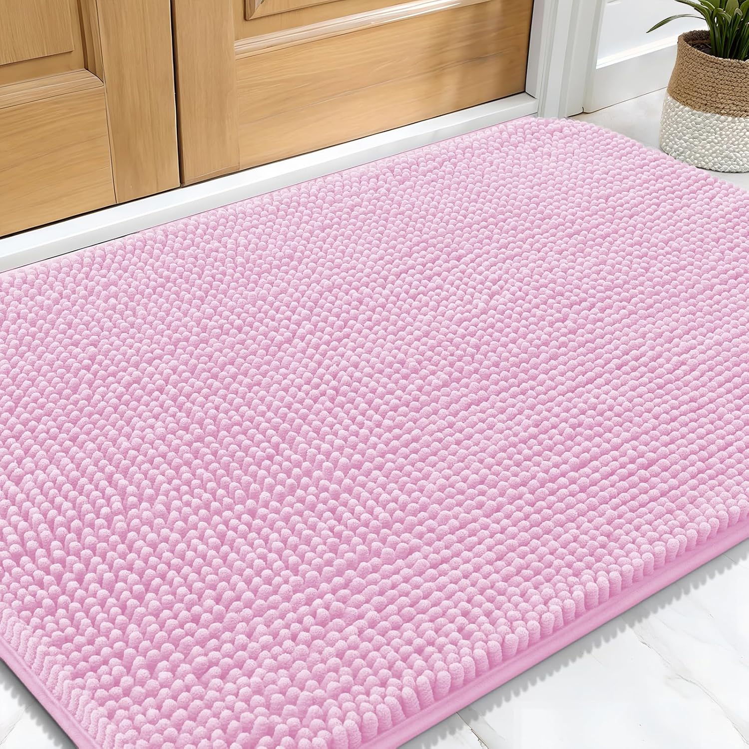 OLANLY Dog Door Mat for Muddy Paws 30x20, Absorbs Moisture and Dirt, Absorbent Non-Slip Washable Doormat, Quick Dry Chenille Mud Mat for Dogs, Entry Indoor Entryway Carpet for Inside Floor, Pink
