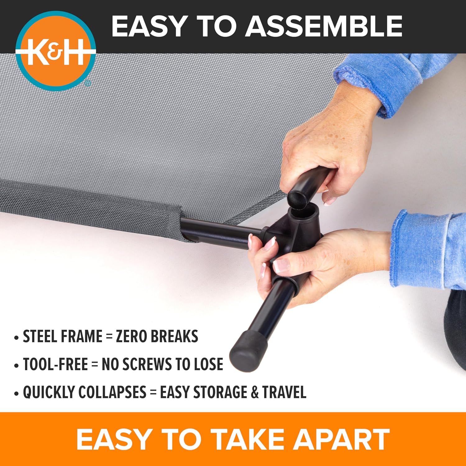 - EASY TOOL-FREE ASSEMBLY: Collapsible outdoor dog cot is easy to assemble and disassemble, no tools necessary making this portable bed great for use at home or during travel, camping, picnicking, place cot for dog training and more