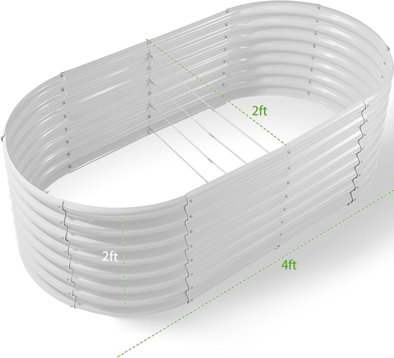 Land Guard 24“ Tall 4×2ft Galvanized Raised Garden Bed Kit, Galvanized Planter Garden Boxes Outdoor, Oval Large Metal Raised Garden Bed for Vegetables(Pearl White, 4×2×2ft)
