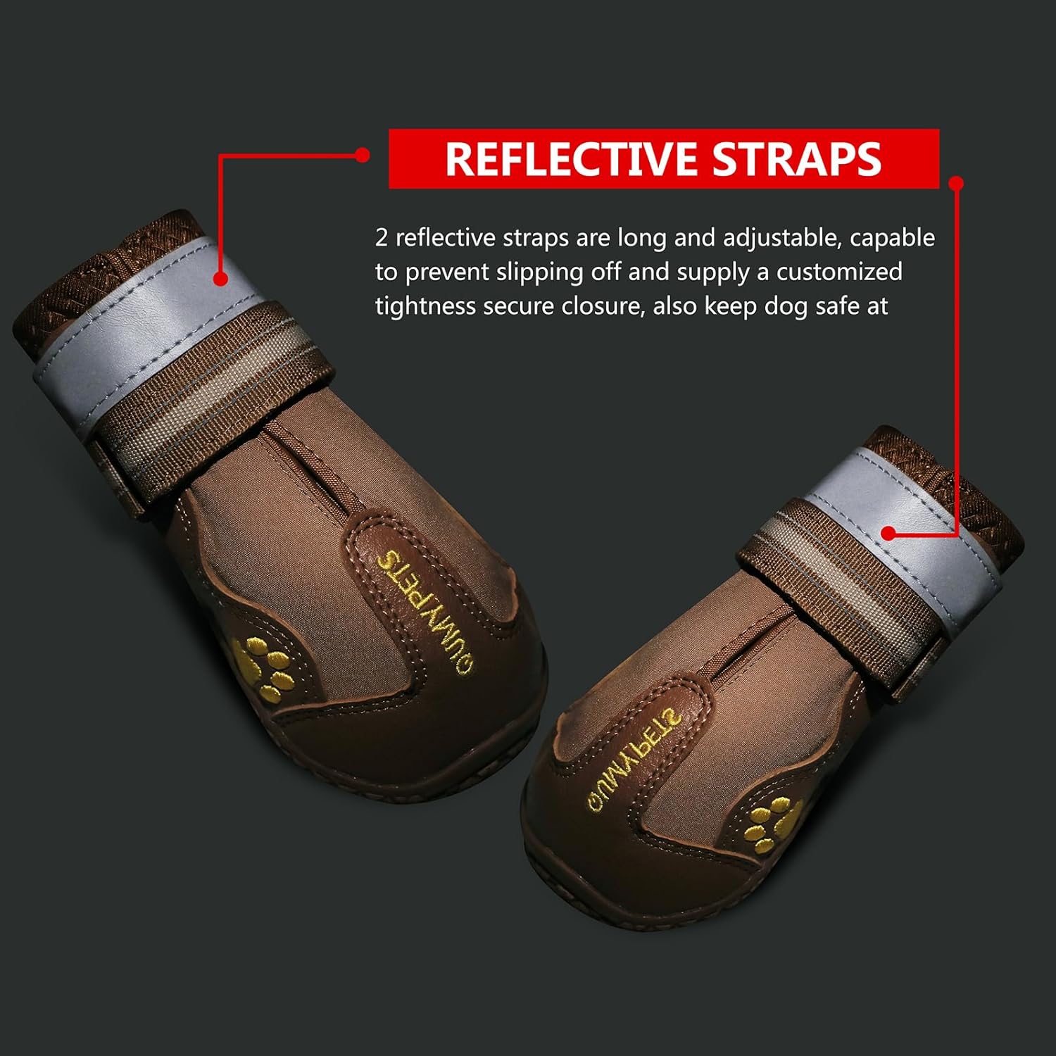 QUMY Dog Shoes for Large Dogs, Medium Dog Boots & Paw Protectors for Winter Snowy Day, Summer Hot Pavement, Water-Resistant in Rainy Weather, Outdoor Walking, Indoor Hardfloors Skid-Resistant Sole