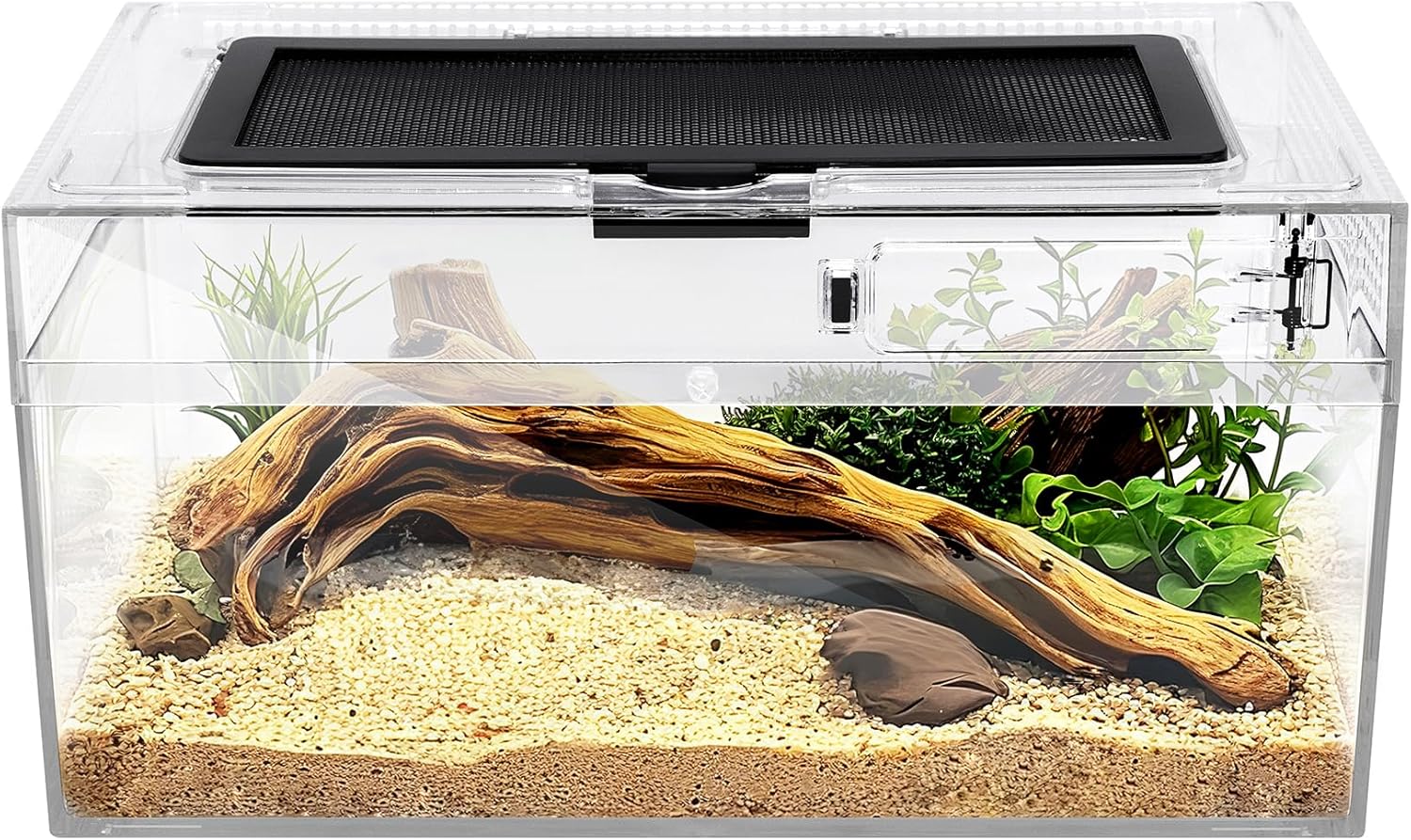 - UNIQUE UNBREAKABLE MATERIAL: Different from the glass and arylic, this tank made of high quality PC materials for sturdy and safe, this terrarium tank is suitable for normal reptile amphibian pets as lizard, crested gecko, frog, snake, tortoise and more