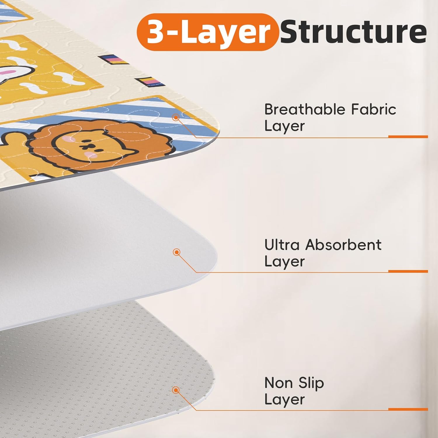 - 4-Layer Protection System: Breathable top layer guides liquid to the 10 mins quick-dry core, leak-proof barrier prevents seepage, and non-slip base stays in place. Shield floors, furniture, and car interiors from accidents