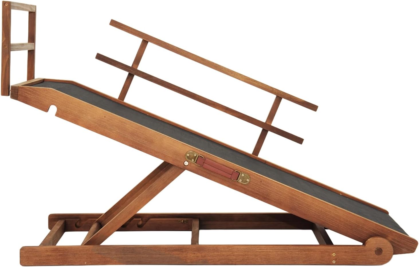 - β Sturdy and Durable: Our pet ramp for dogs and cats crafted with solid wood and reinforced with stainless steel hardware, our ramp is built to support pets up to 210lbs, offering both strength and stability for their safety. If the ramp is slippery for your floorboar. You could put carpet or non slip material under the ramp.