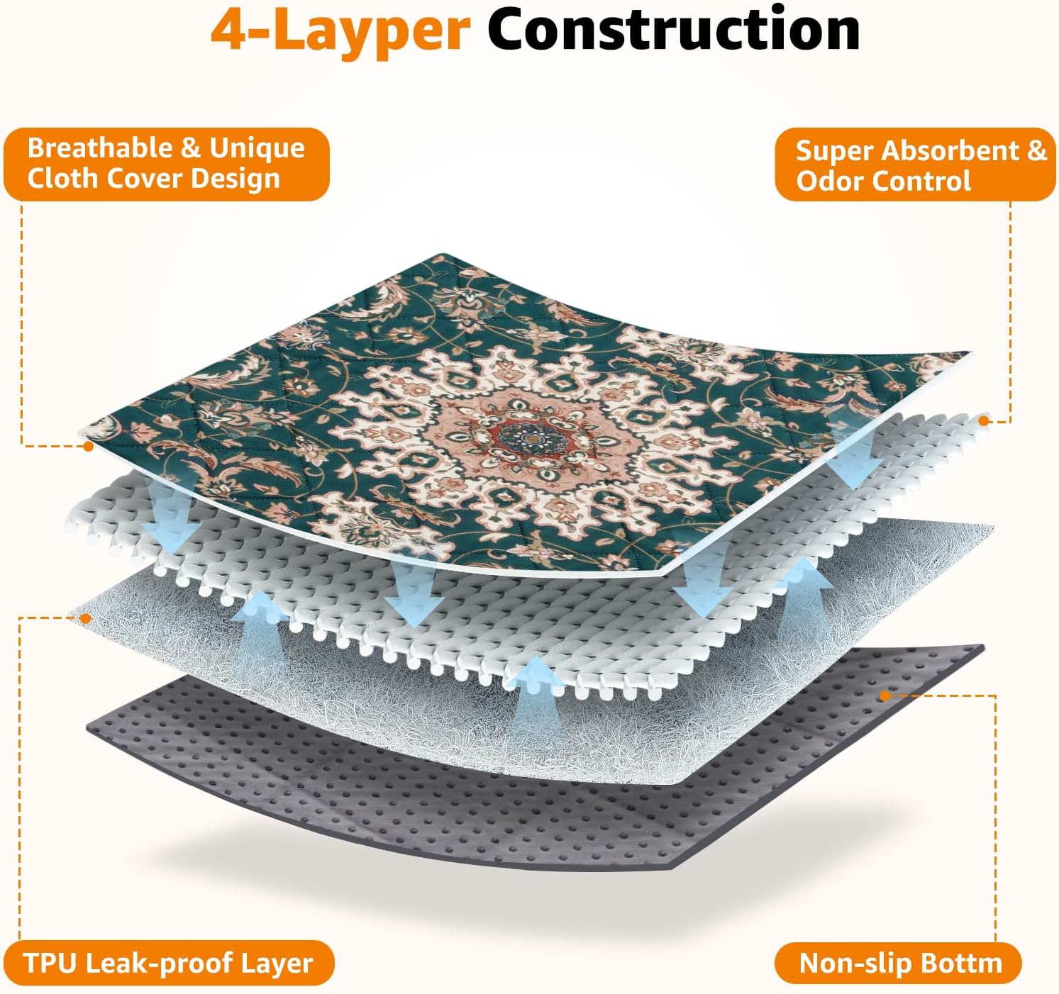 - SUPER ABSORBENT & LEAKPROOF: These washable dog pee pads made with high-density absorbent and waterproof layer, can quickly soak up liquids without leaking, keeping your floors and furniture clean and dry, let your pet feel comfortable.