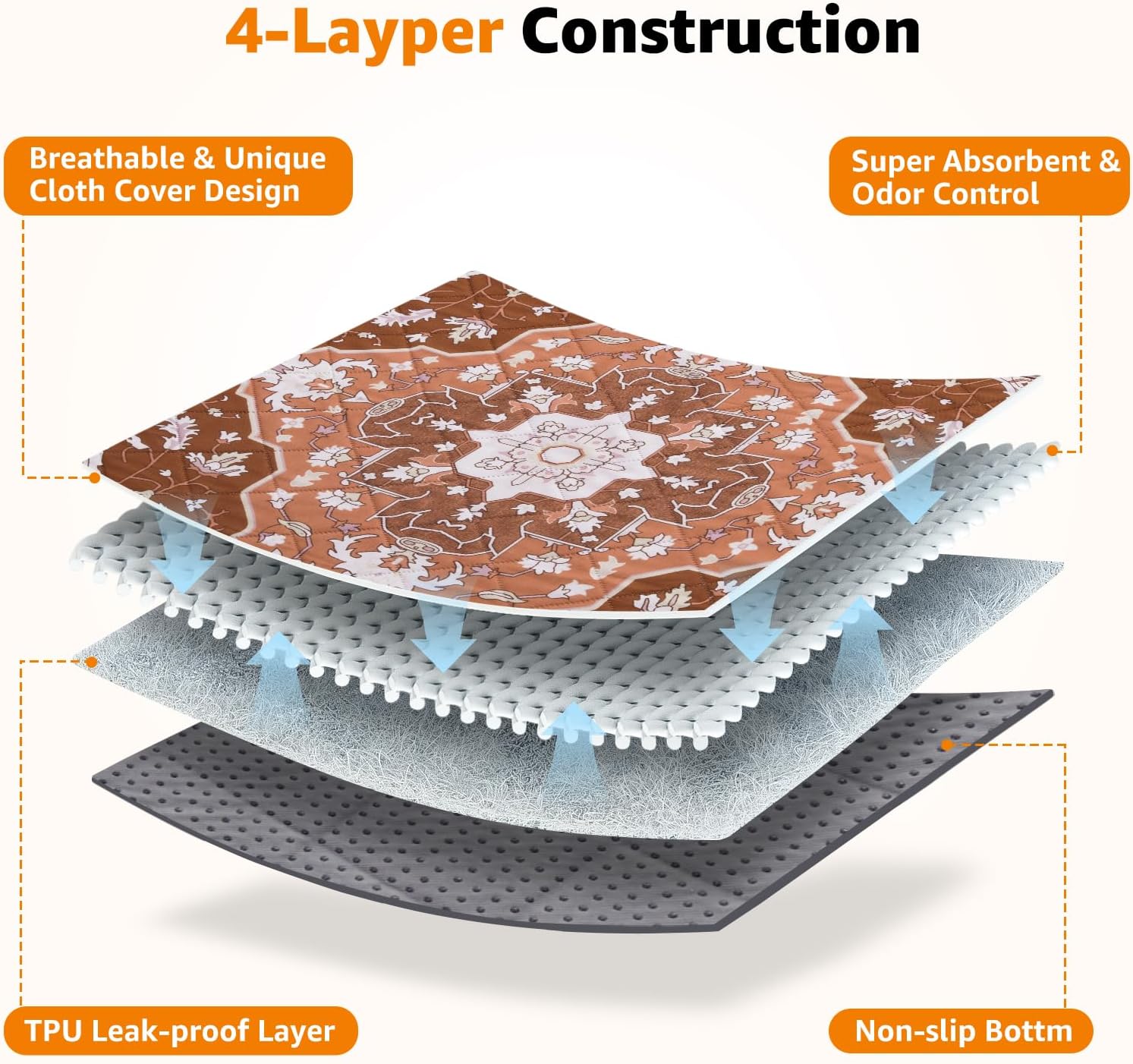 - Super Absorbent & Leakproof: These washable dog pee pads made with high-density absorbent and waterproof layer, can quickly soak up liquids without leaking, keeping your floors and furniture clean and dry, let your pet feel comfortable.