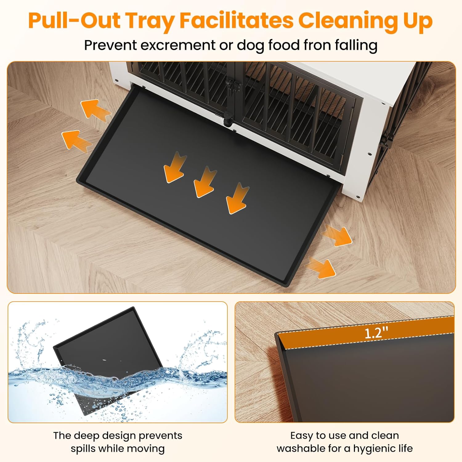 - γVersatile Tray UsageγPut the tray under the bottom mesh to catch crumbs, fur, and dirt, keeping your dog's place clean without dirtying your floor, maintaining a tidy living space for your pet, or place the tray above the mesh to offer your dog a flat, comfortable surfaceβit's up to you