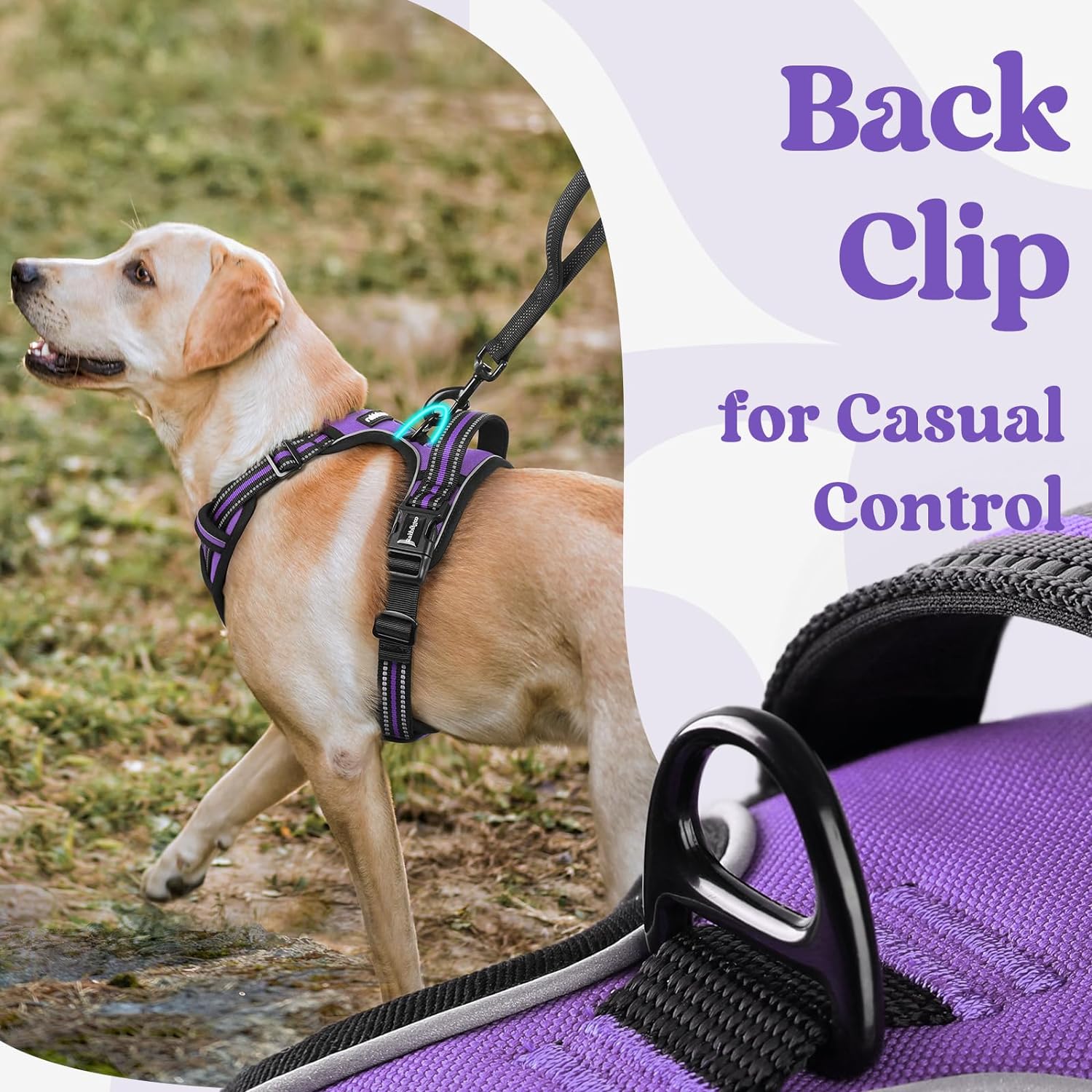 rabbitgoo Dog Harness Medium Sized, No Pull Pet Harness with 3 Buckles, Adjustable Soft Padded Vest with Control Handle, Walking Reflective Pet Vest for Medium Dogs, Purple, M