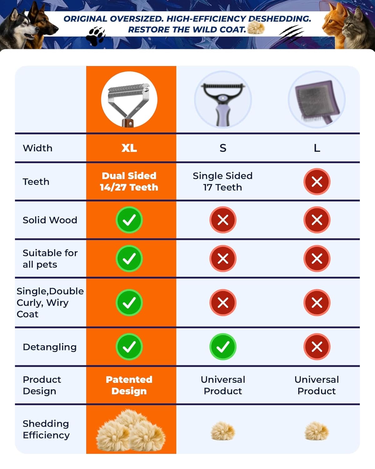Extra Large 2-Sided Undercoat Rake for Dogs & Cats, Dog Brush for Shedding Remove Mats, Dematting Comb, Safe&Gentle Grooming Brush for German Shepherds Medium to Long-Haired Pets,Premium Wooden Handle